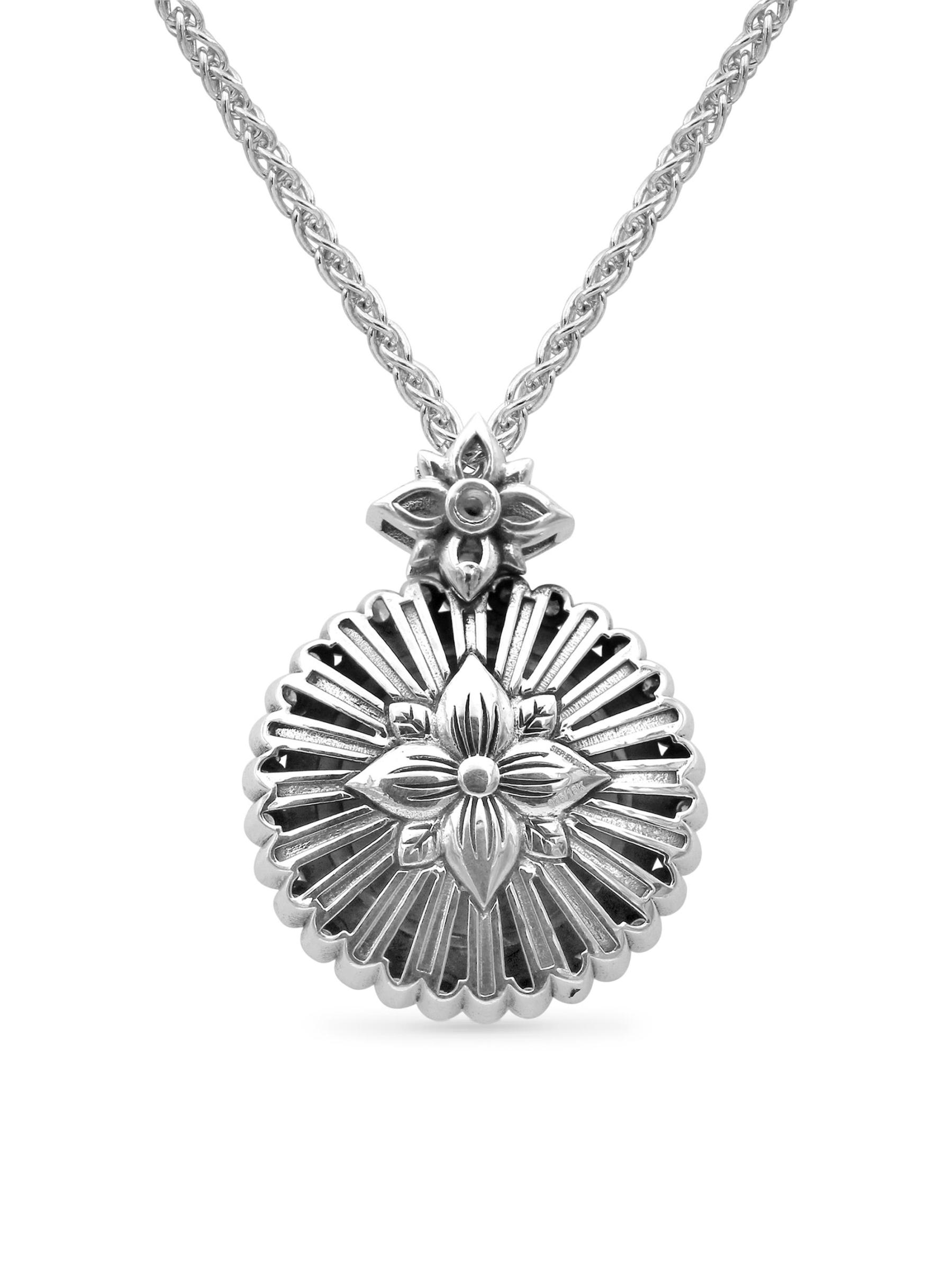 تتميز قلادة ستيفن دويك المصنوعة يدويًا من الفضة الاسترلينية والذهب الأصفر عيار 18 قيراطًا بلؤلؤة بيضاء مضيئة تحدها ألماس الشمبانيا اللامع. هذا الإكسسوار هو من مجموعة Pearlicious Collection الخاصة بالمصمم، وهي إعادة تفسير حديثة لمجوهرات اللؤلؤ الكلاسيكية المثالية للارتداء اليومي.