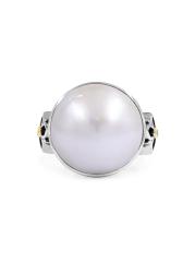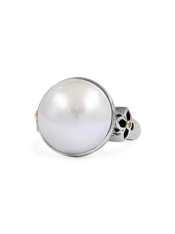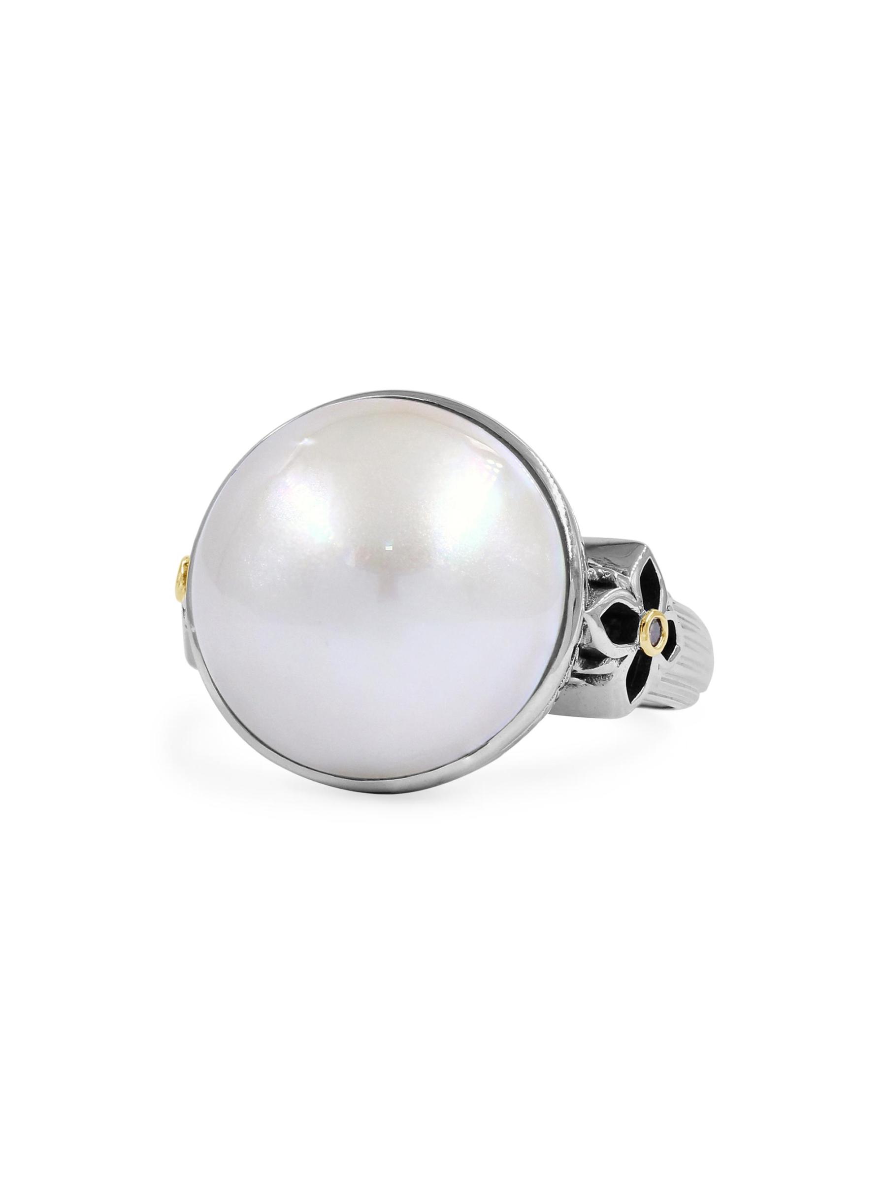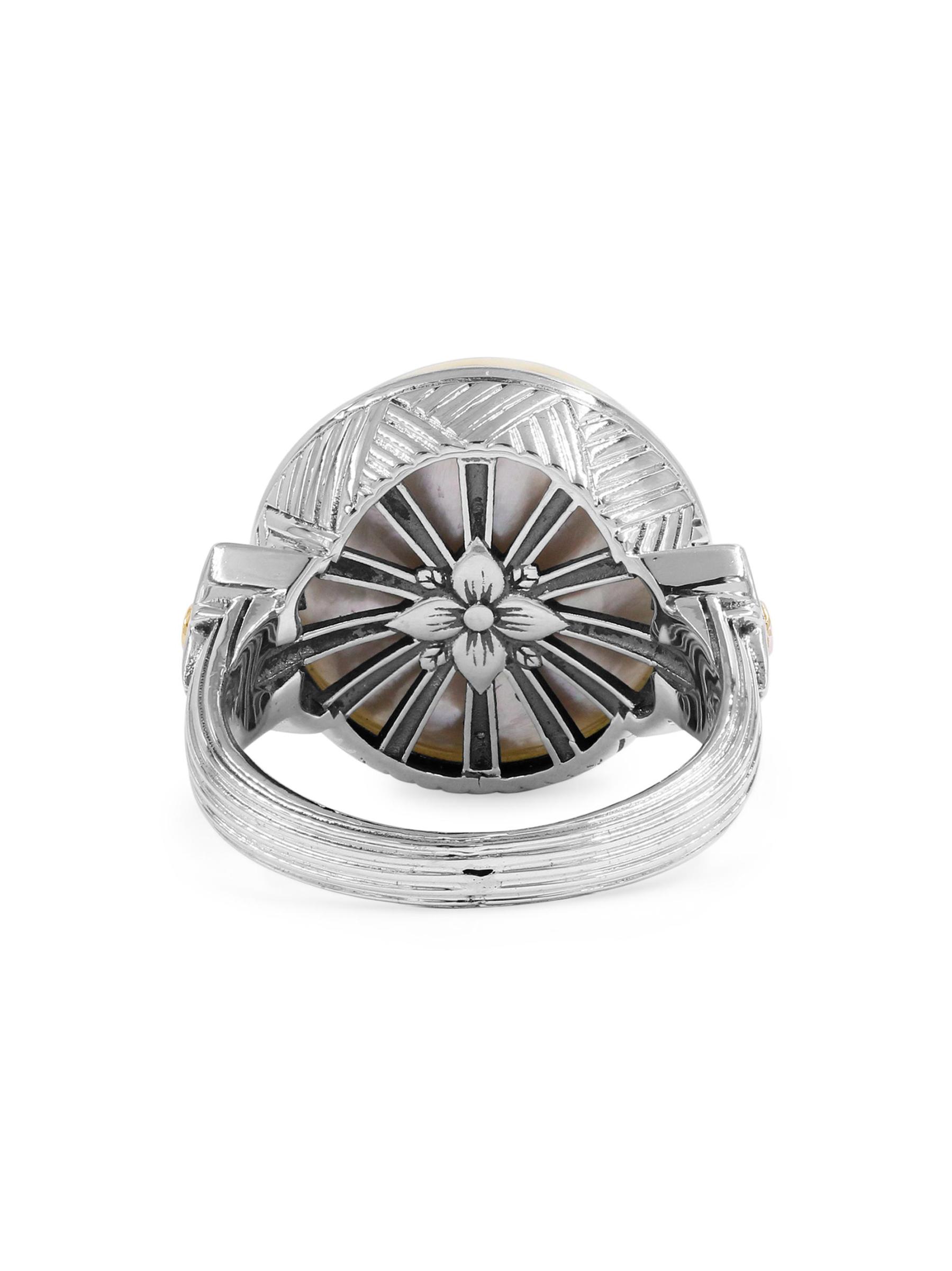 خاتم من الفضة الإسترلينية اللؤلؤية والذهب الأصفر عيار 18 قيراط والأحجار الكريمة المتعددة