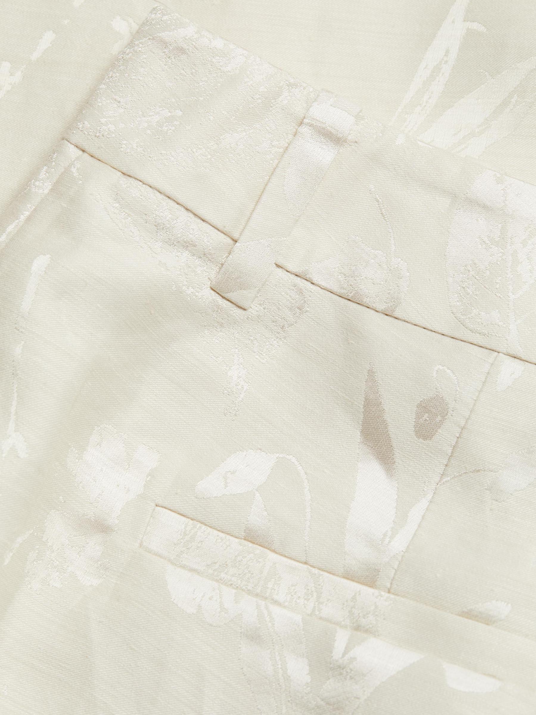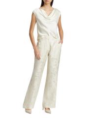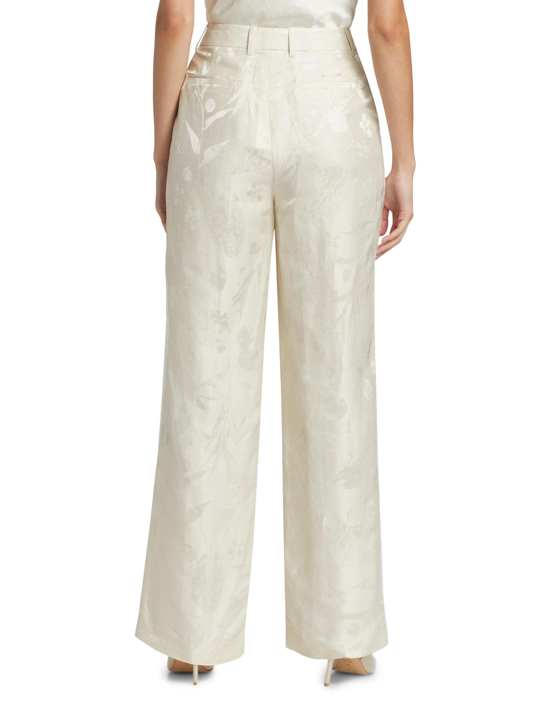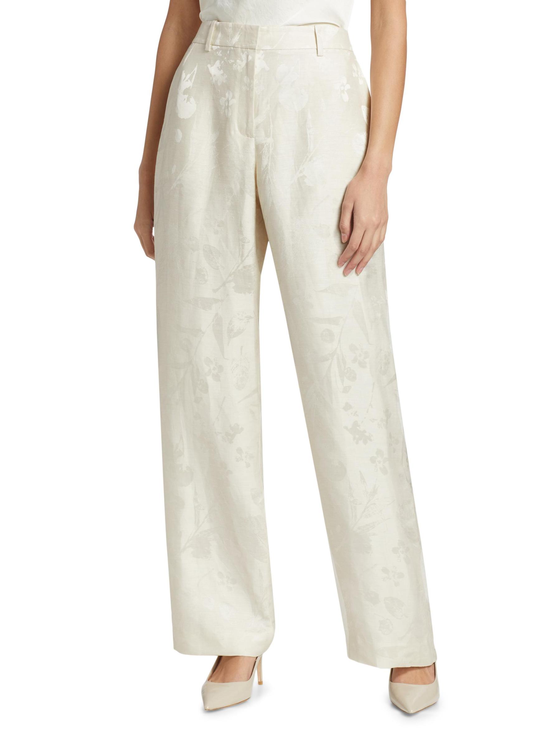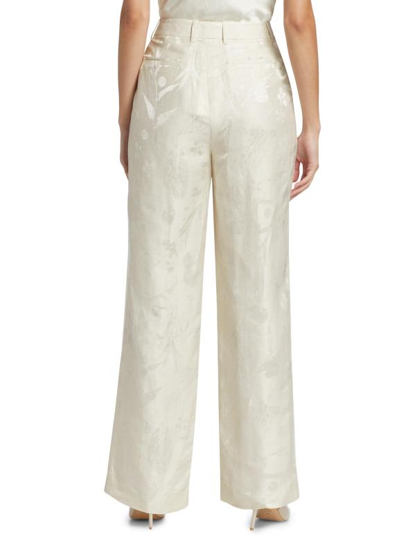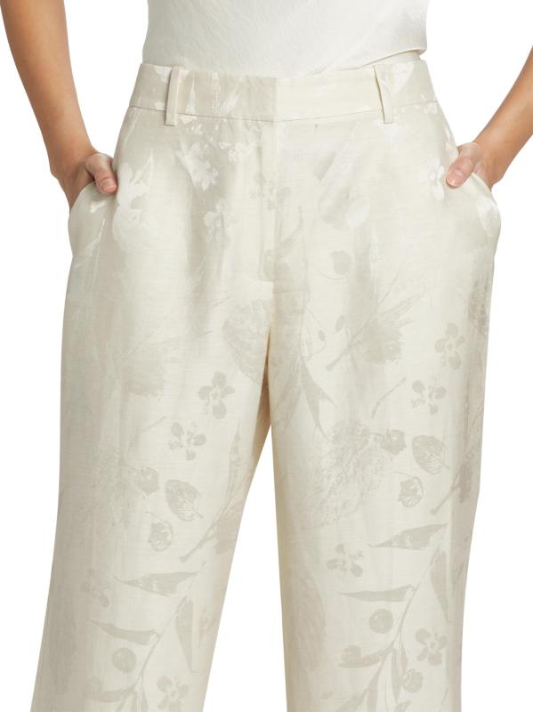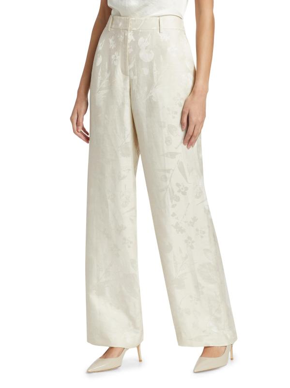 من مجموعة Pebble. صُمم بنطال Gates الشاهق من Lafayette 148 New York بتصميم واسع الساق من مزيج الكتان ومزين بنمط جاكار زهري رقيق.