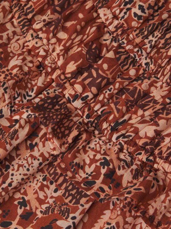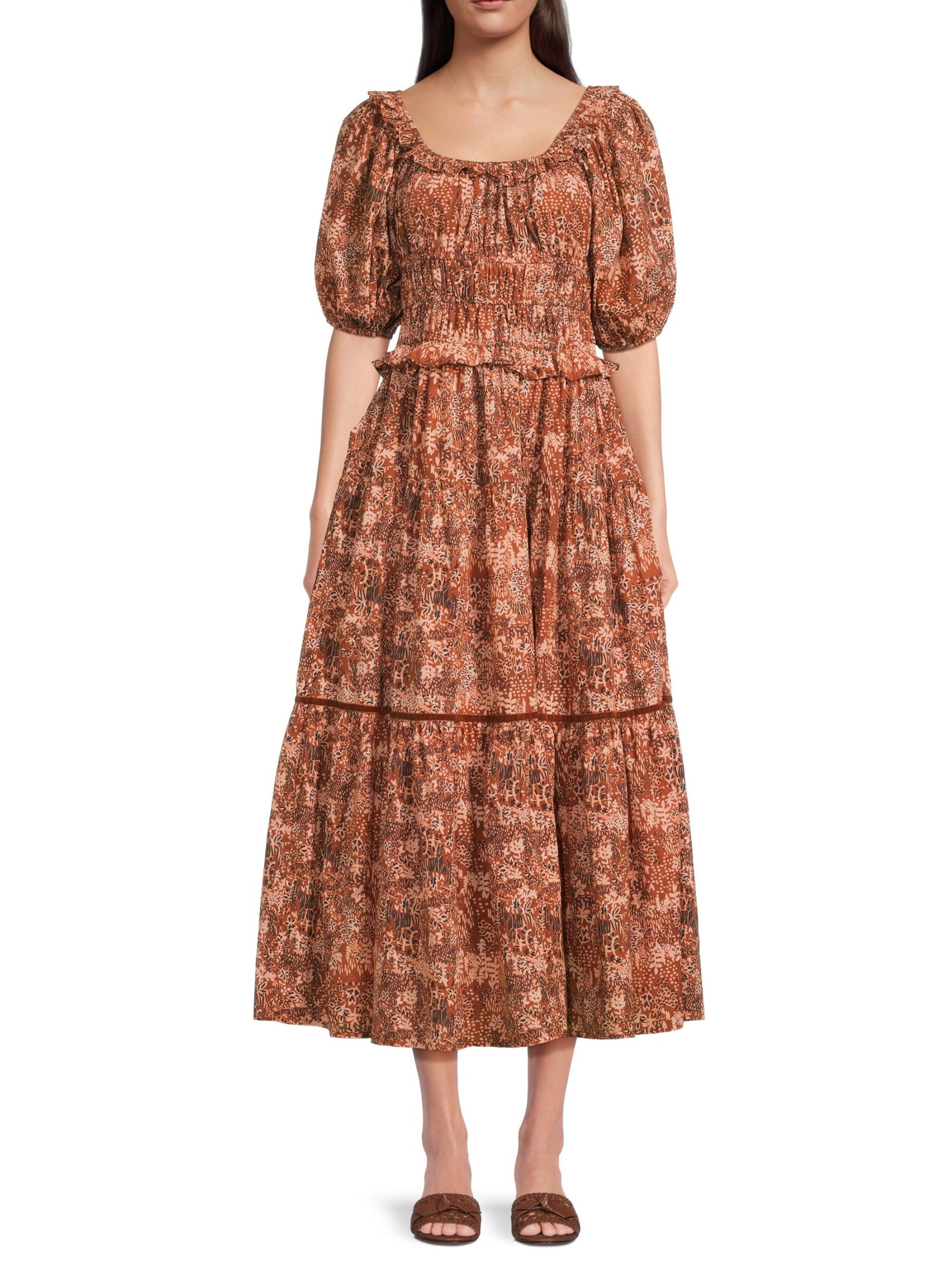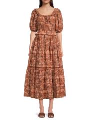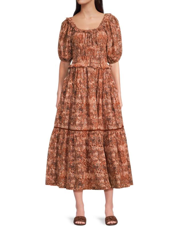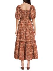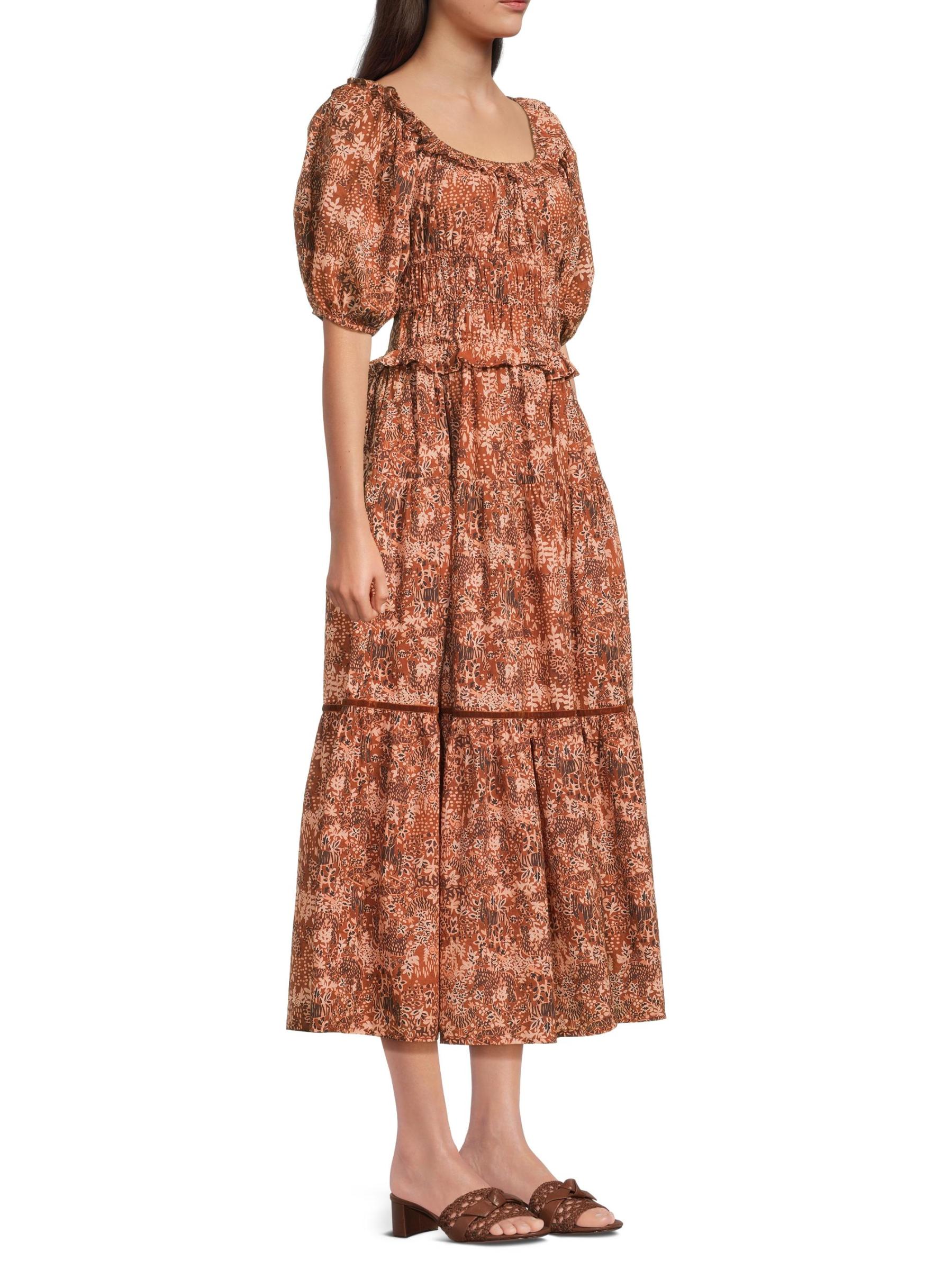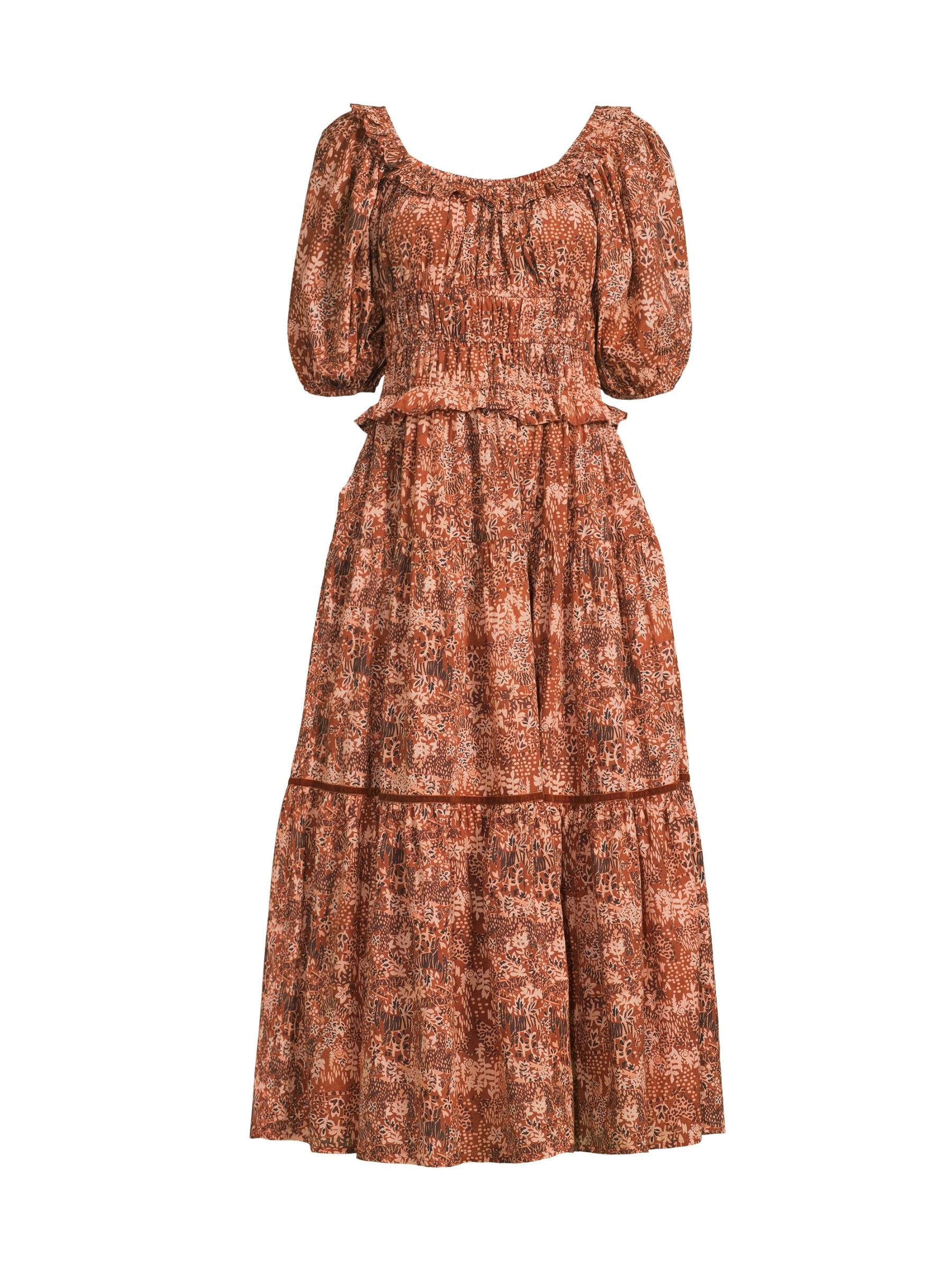يتميز فستان Percy من Ro's Garden المصنوع من القطن بنقشة الأزهار وتنورة متدرجة. يتميز هذا الطراز بصدّار مكشكش، ويمتاز برقبة دائرية وأكمام بالون بطول الكوع.