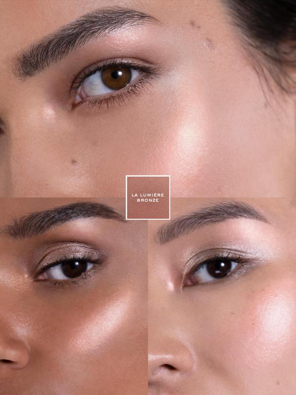 يضفي الهايلايتر الذهبي من La Lumière لمسة معدنية لامعة على الملامح بينما تلتقط انعكاساته الرقيقة الضوء. 21 غرام. صُنع في فرنسا.