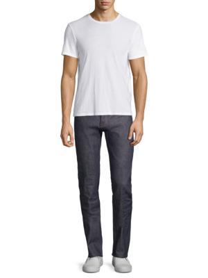 يجسد الجينز الريفي ذو الساق المستقيمة حافة عتيقة.
