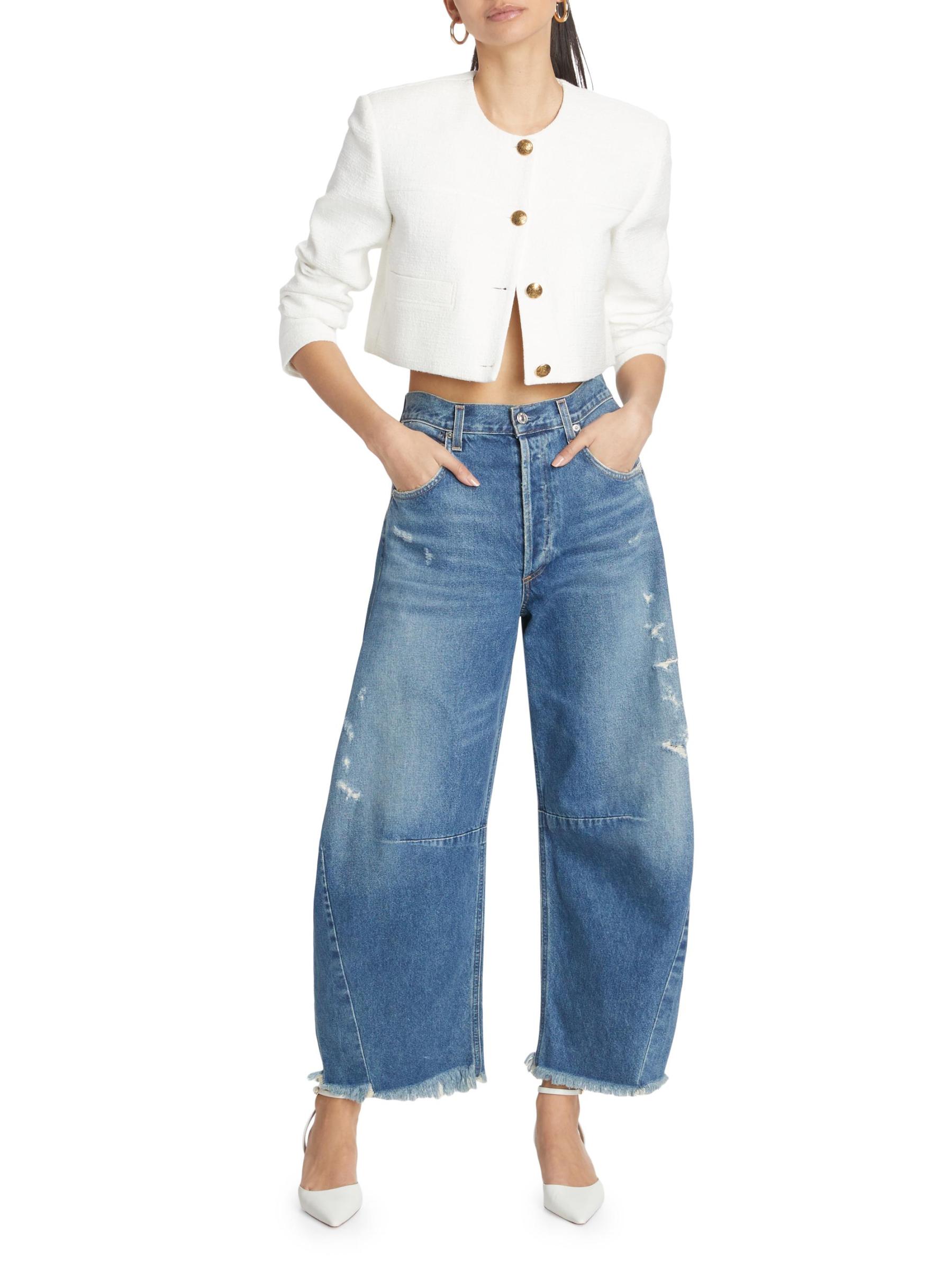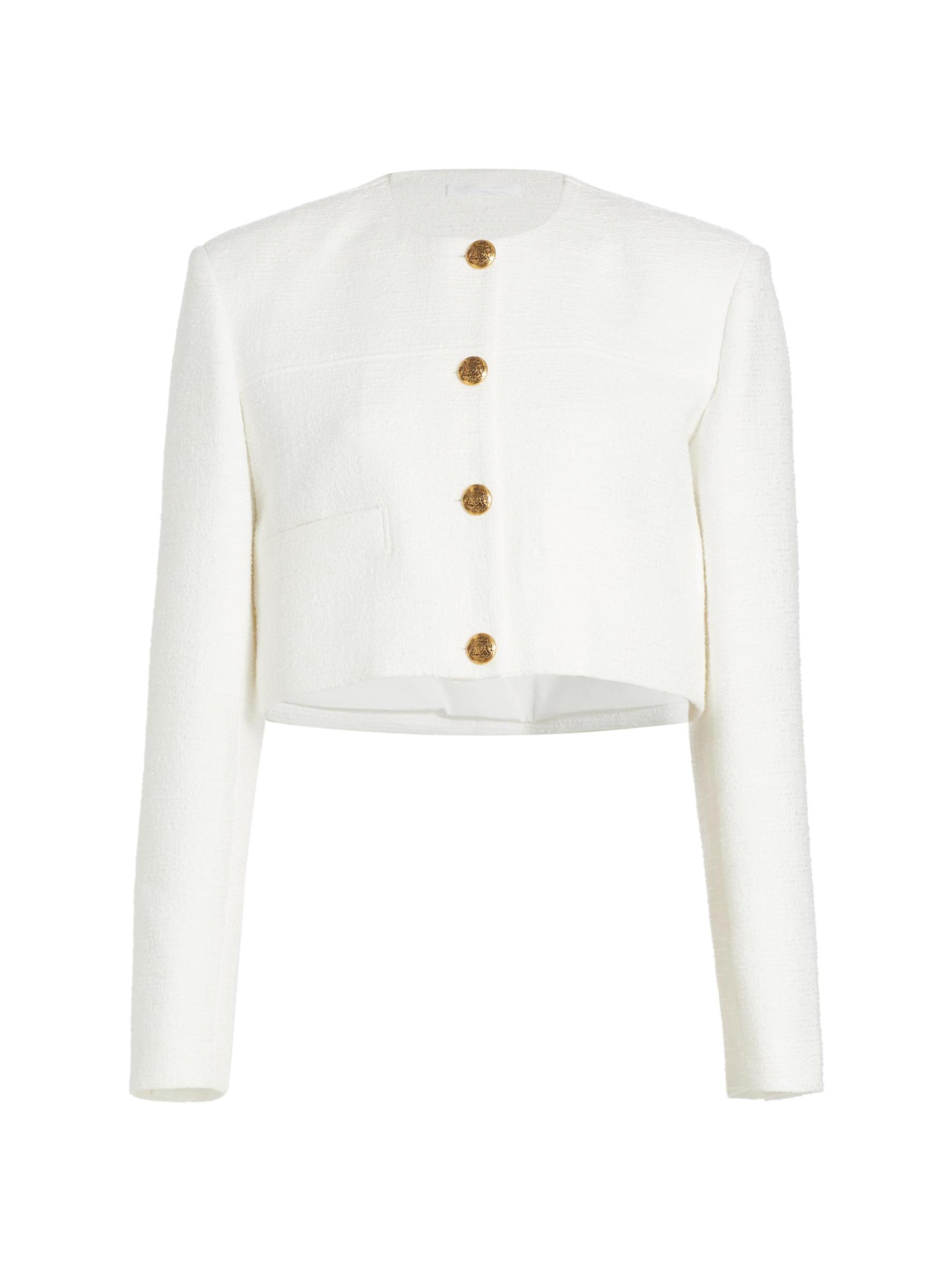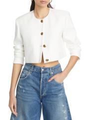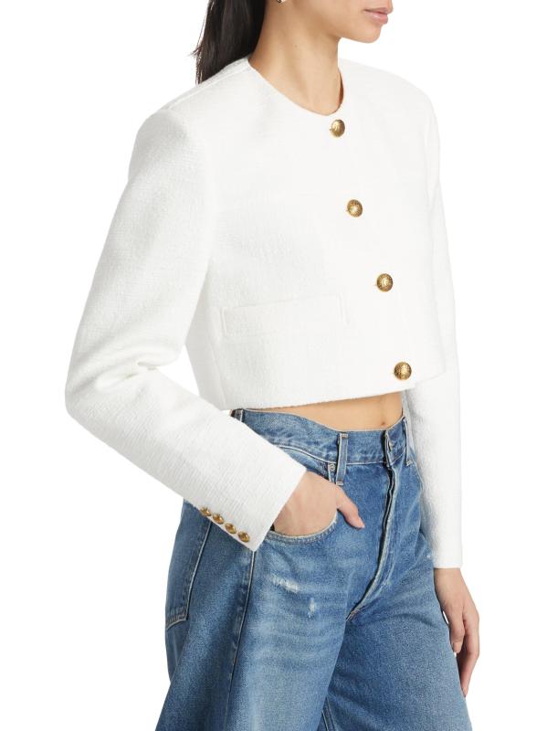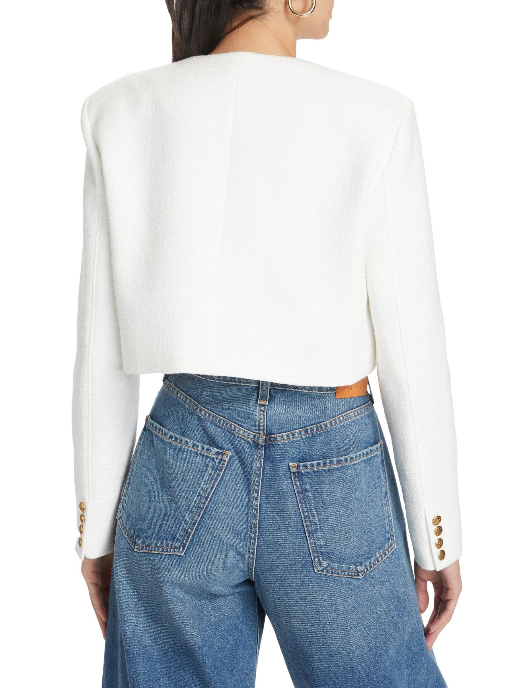 تم تصميم جاكيت بيا من التويد من Citizens of Humanity بتصميم قصير مع رقبة مستديرة وجيب مبطّن.