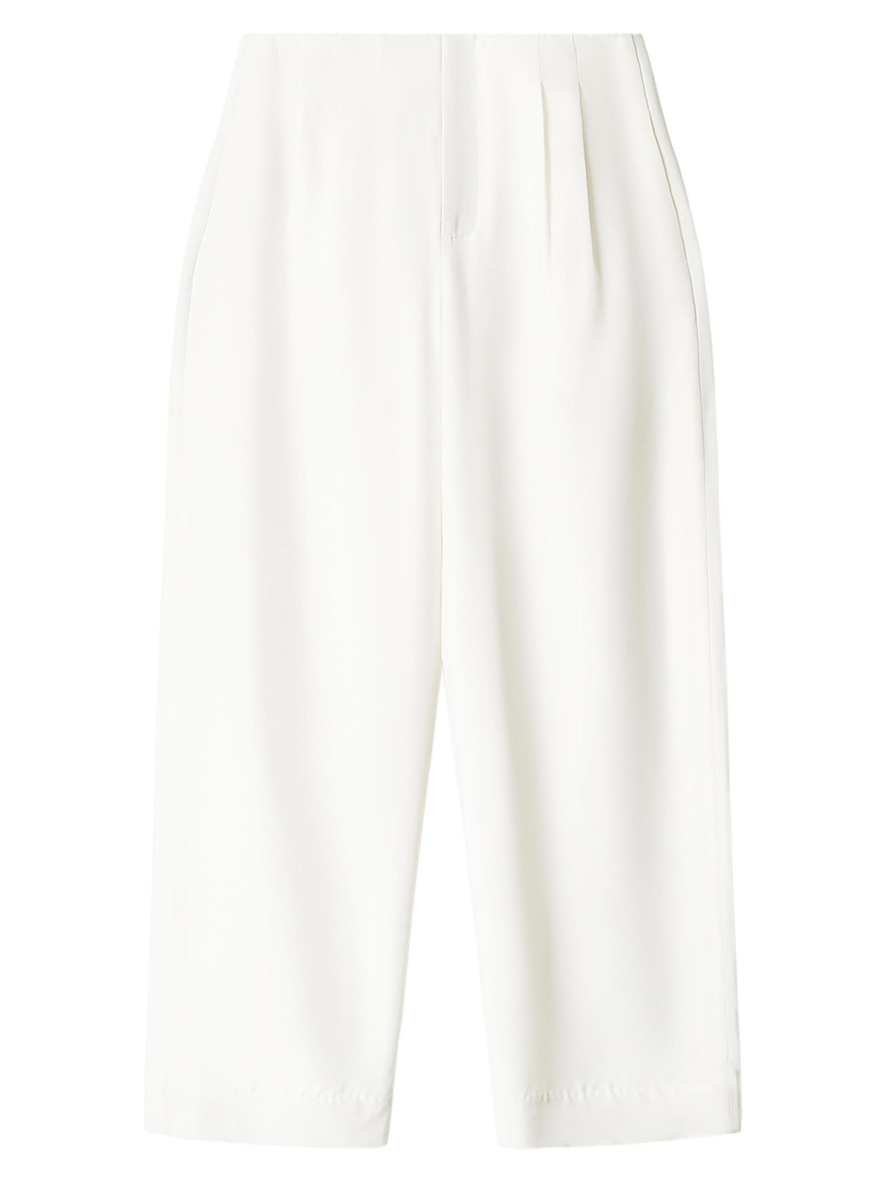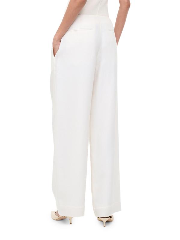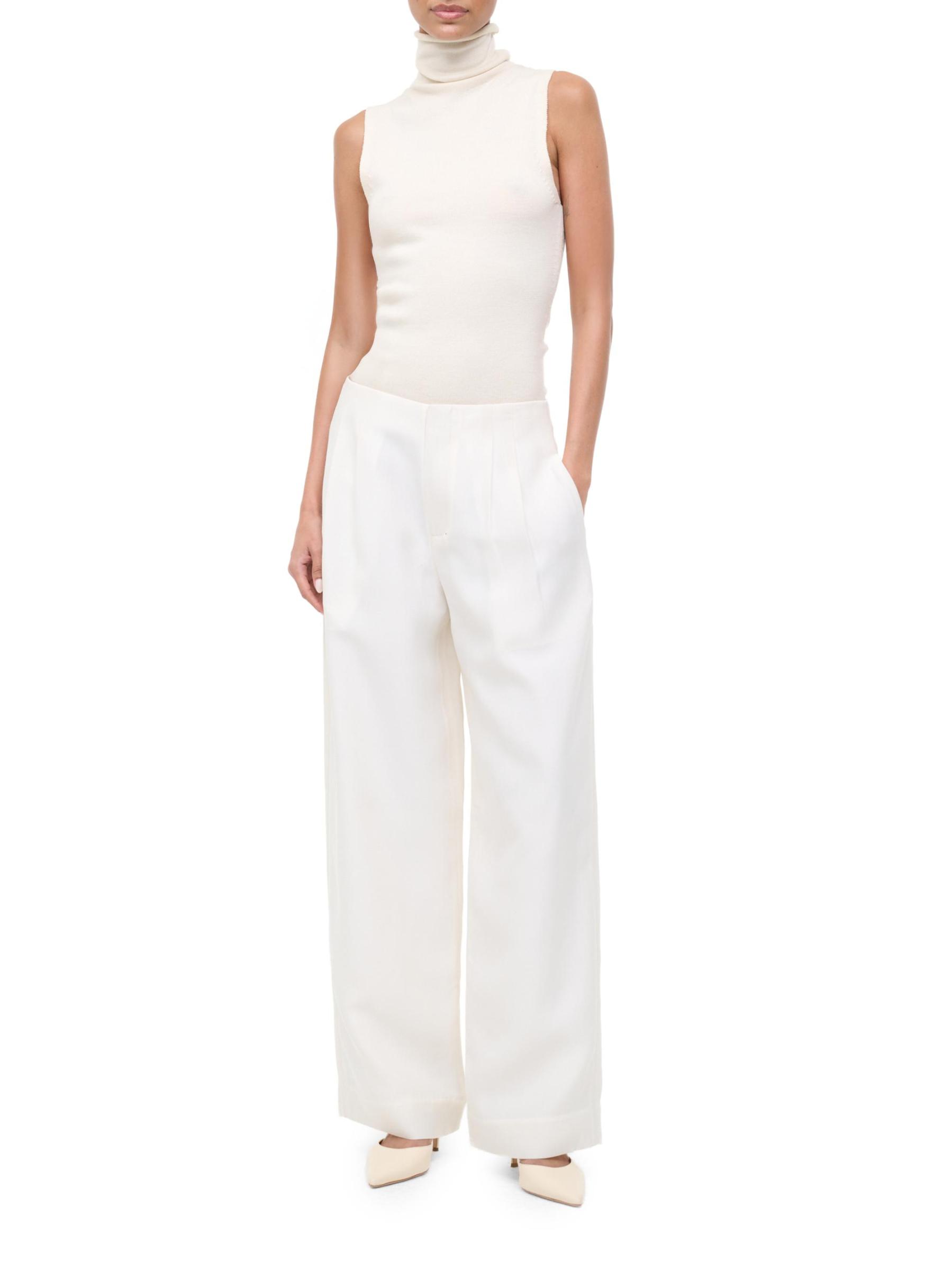 يتميز بنطال بيير ذو الثنيات من Staud، المصنوع من مزيج خفيف من الصوف والحرير، بجيوب جانبية مشقوقة وتصميم واسع الساق وحزام خصر متوسط الارتفاع.