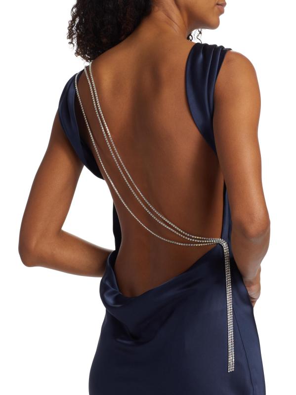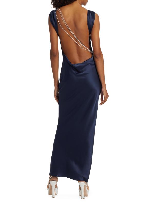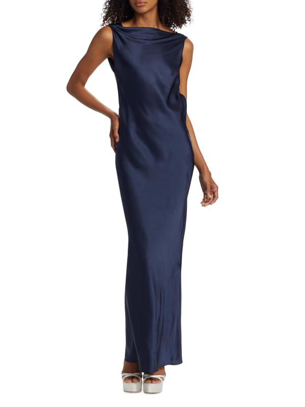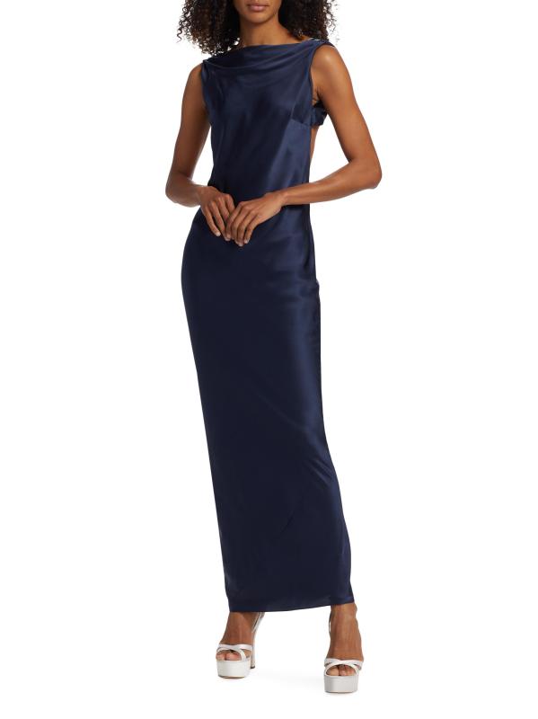 فستان بيير سيلك ساتان ذو ظهر على شكل قلنسوة