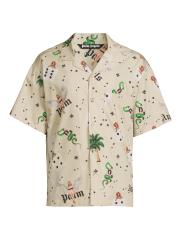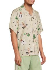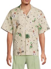 صُنع قميص البولينج هذا ذو الأكمام القصيرة من بالم أنجلز من القطن، وهو مزين بزخارف فتاة على شكل دبوس.