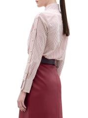 تتميز هذه البلوزة من Silvia Tcherassi، المصنوعة من القطن، بنمط مخطط عمودي مزين بزخارف نباتية كبيرة الحجم. تشتمل القطعة ذات الأكمام الطويلة على لمسات زخرفية دقيقة على طول الأكمام والفتحة.طوق سبريد أساور بأزرار بأكمام طويلة حافة على شكل ذيل القميص إغلاق بأزرار أمامية قطن بنسبة 100% تنظيف جاف مستوردة