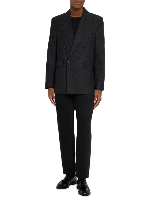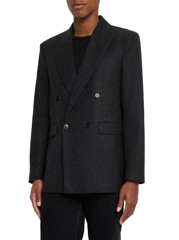 بليزر مزدوج الصدر من مزيج الصوف المقلم