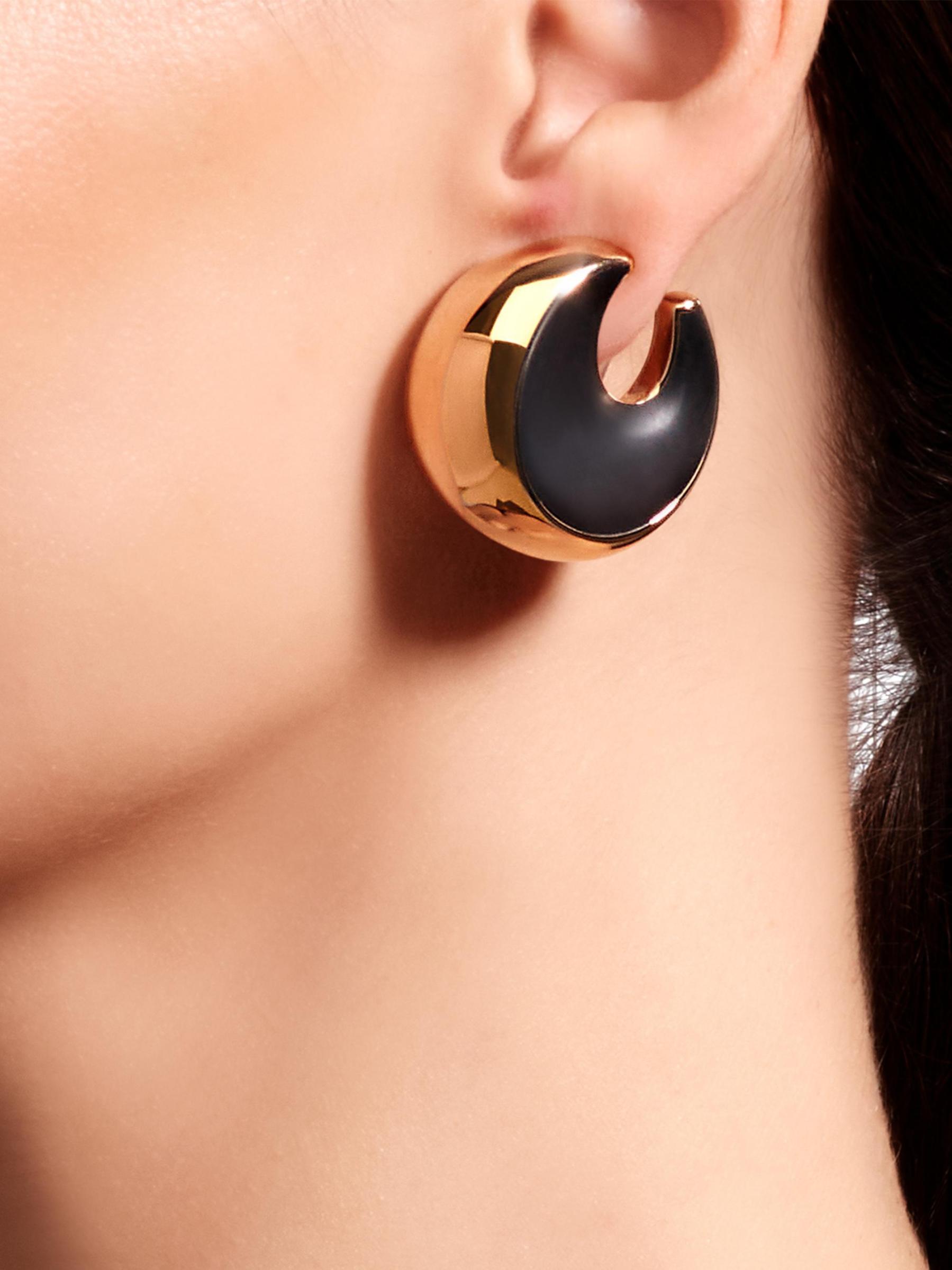من مجموعة بيرويت. تتميّز هذه الأقراط المزوّدة بمشبك، المصنوعة يدويًا من الذهب الوردي عيار 18 قيراطًا، بتصميم منحني فريد ولمسة نهائية مصقولة تعكس الضوء بشكل جميل. تأسست Vhernier في فالنزا بإيطاليا عام 1984، وتشتهر بتصميمات المجوهرات الحديثة والتجارب في الأشكال والمعادن الثمينة.ذهب وردي عيار 18 قيراط/جت تشغيل الكليب صُنع في إيطاليا