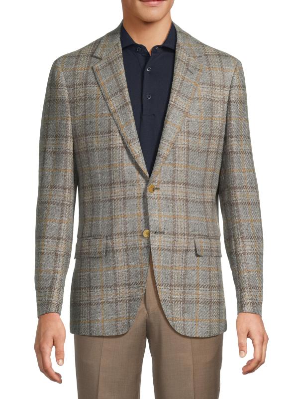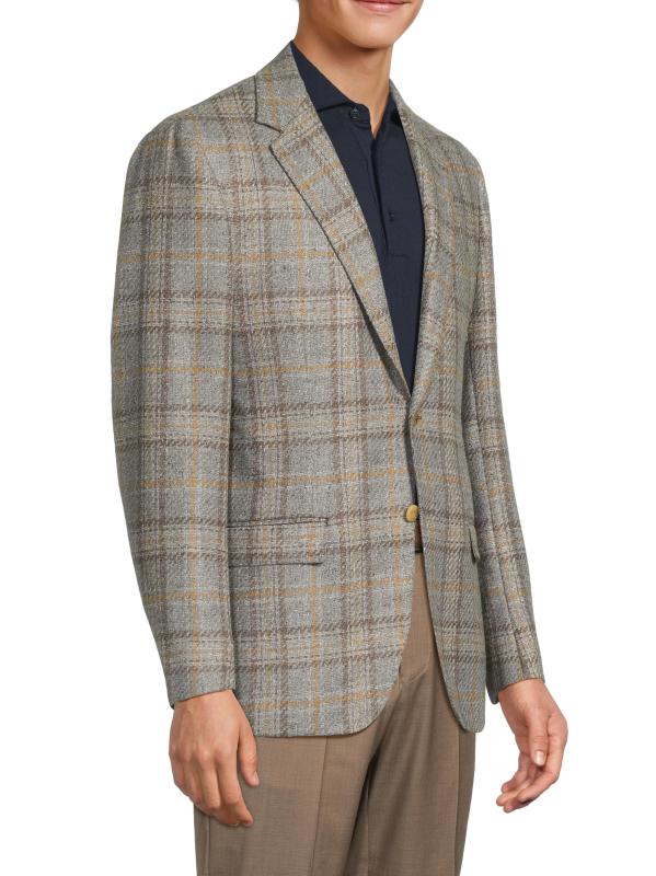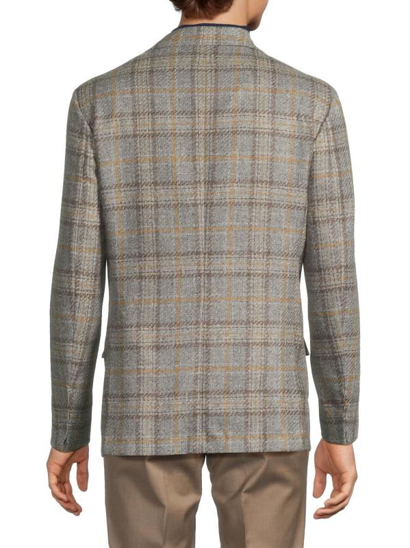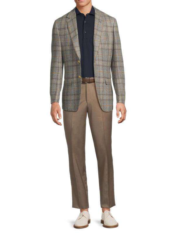 صُنعت هذه السترة من Sartorio Napoli في إيطاليا من مزيج من الصوف البكر المنقوش ومصممة بفتحات خلفية مزدوجة.
