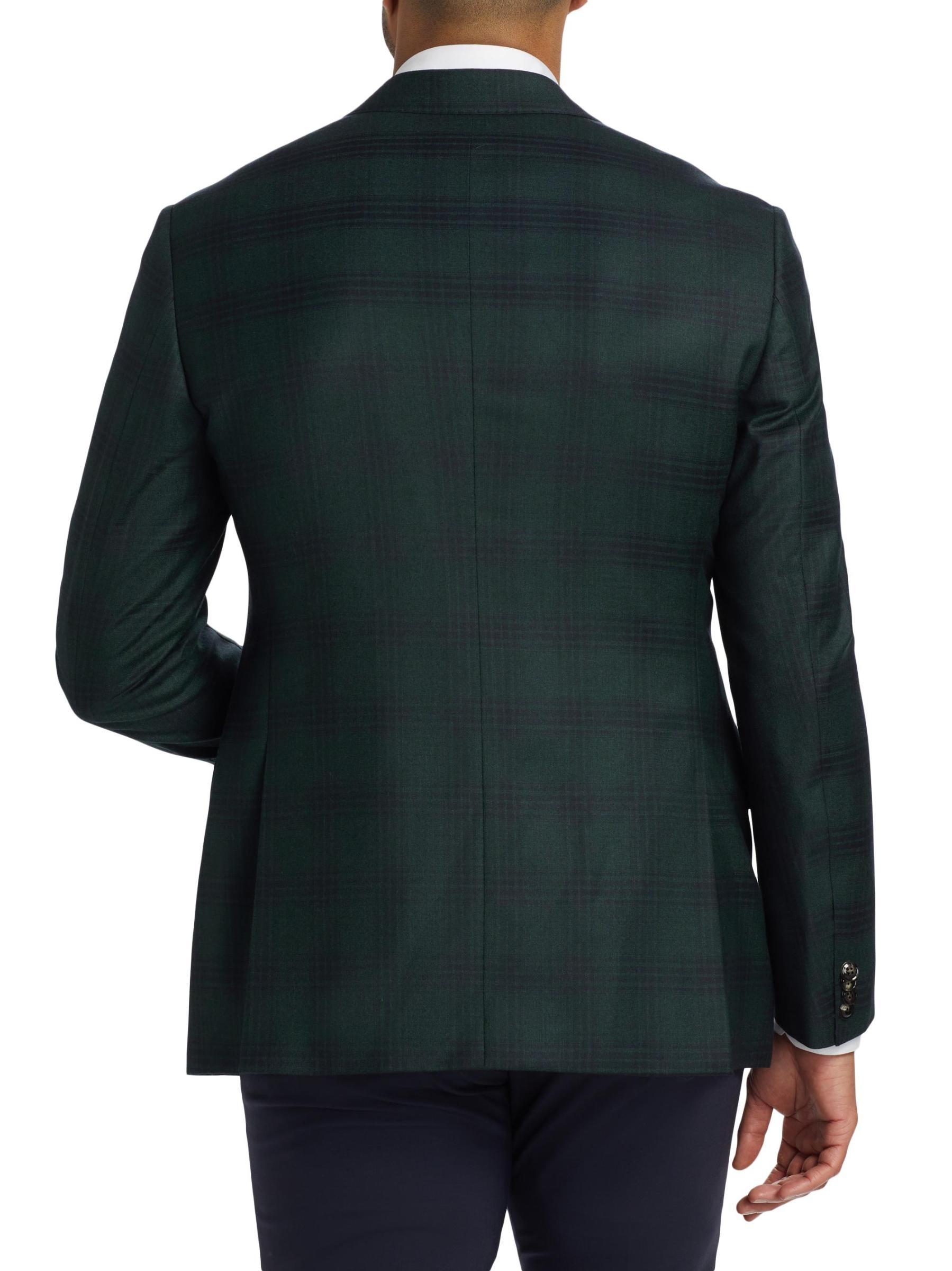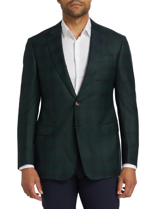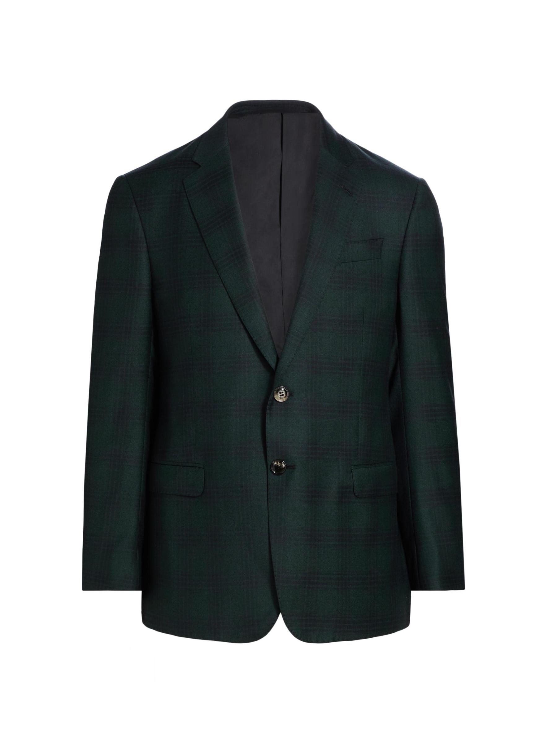 صُممت سترة جورجيو أرماني المنقوشة أحادية الصدر من مزيج الصوف والكشمير وتتميز بتصميم ضيق ومصمم خصيصًا.