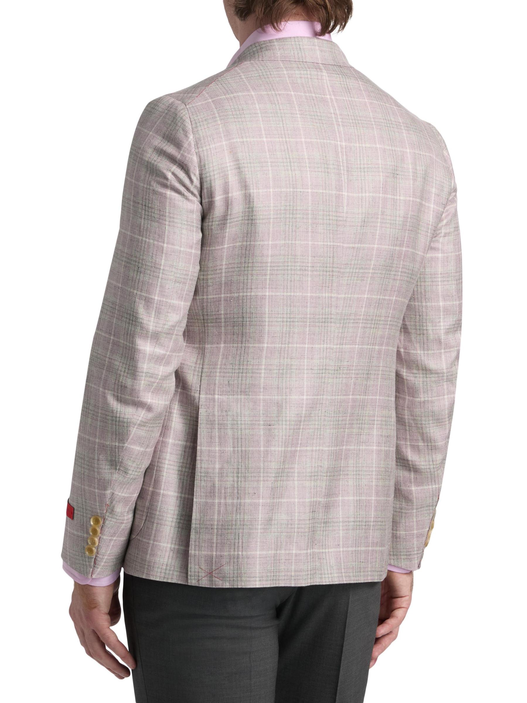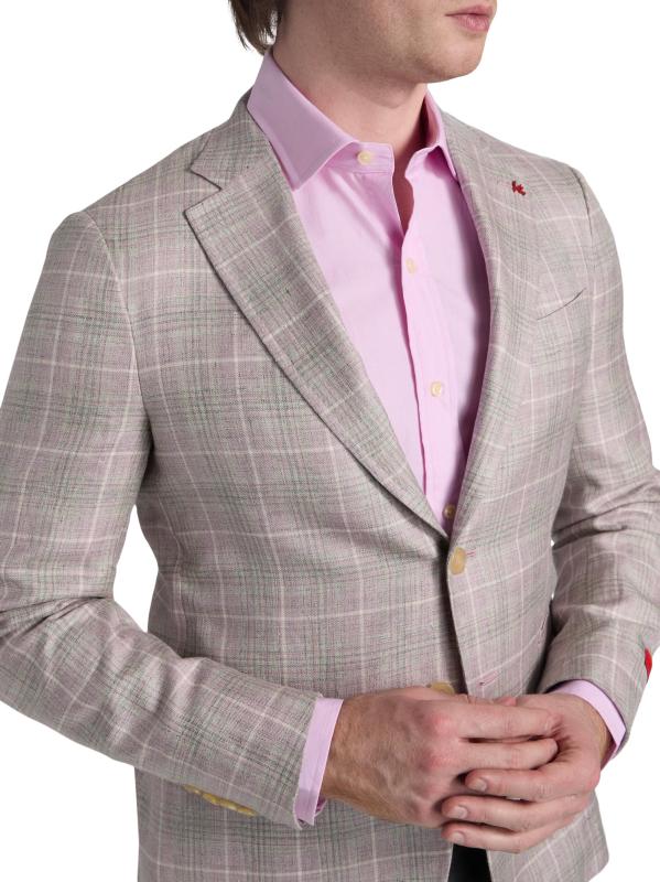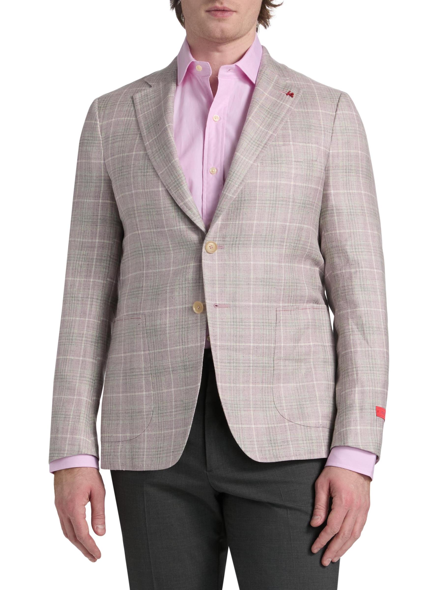 صُنع هذا المعطف الرياضي المنقوش من Isaia من مزيج فاخر من الصوف والحرير والكتان. تُبرز ثنيات الصدر المشقوقة والجيوب الجانبية المزركشة والمزرين للإغلاق الخياطة النابولية المميزة للعلامة التجارية.