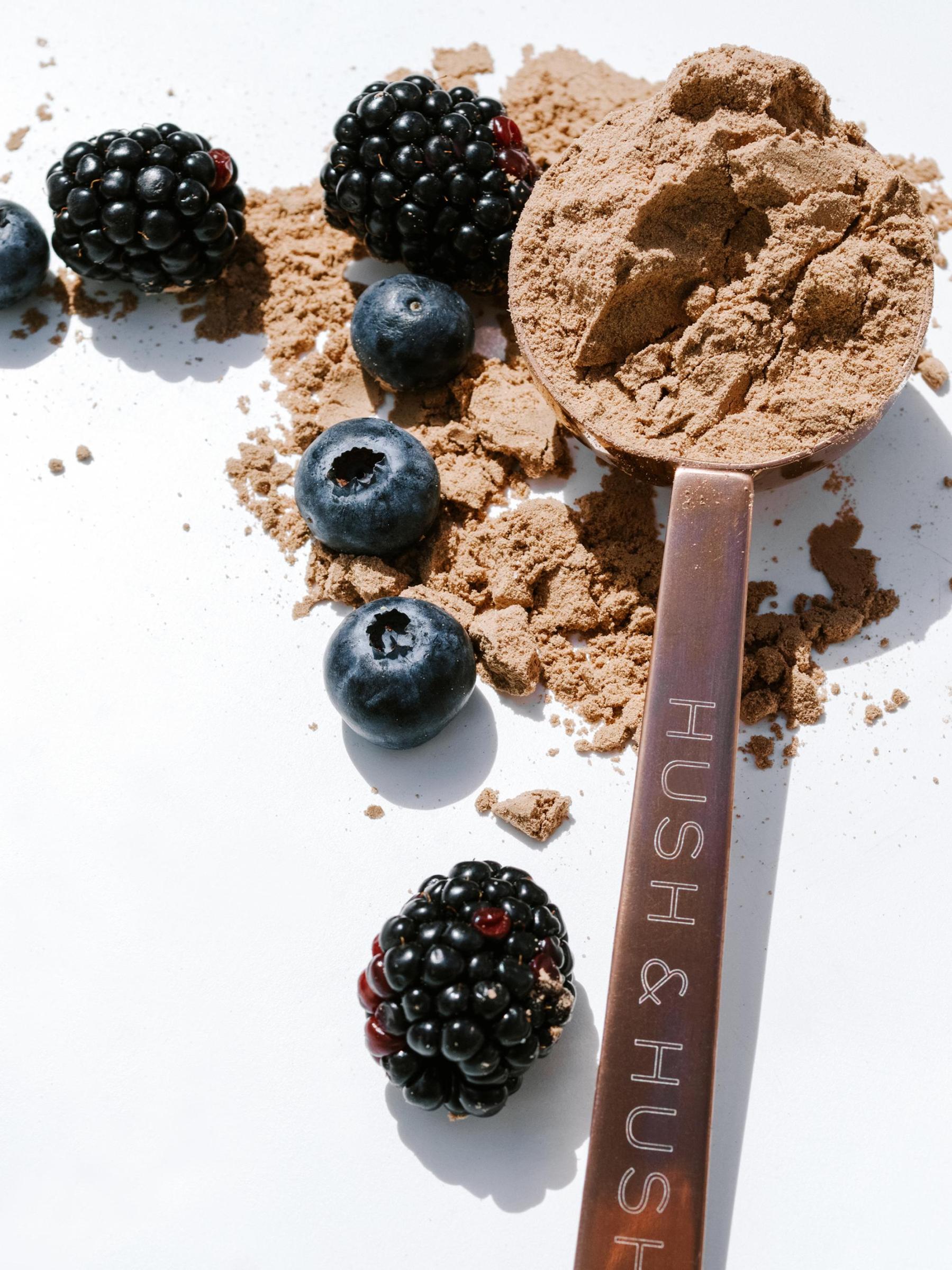 مسحوق بروتين نباتي شامل يوفر مكونات فائقة ومغذيات يومية أساسية للطاقة النظيفة والأمعاء الصحية.