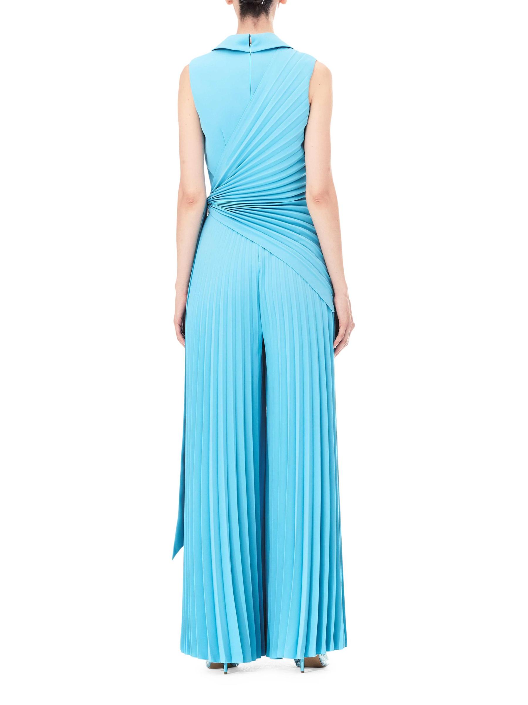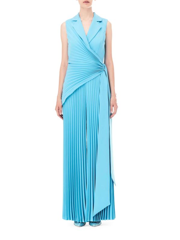تتميّز جمبسوت Honayda بدون أكمام والمصنوعة من الكريب المطوي بطيات على ثنيات على ثنيات منسدلة وسحّاب خلفي ووشاح برباط ذاتي.