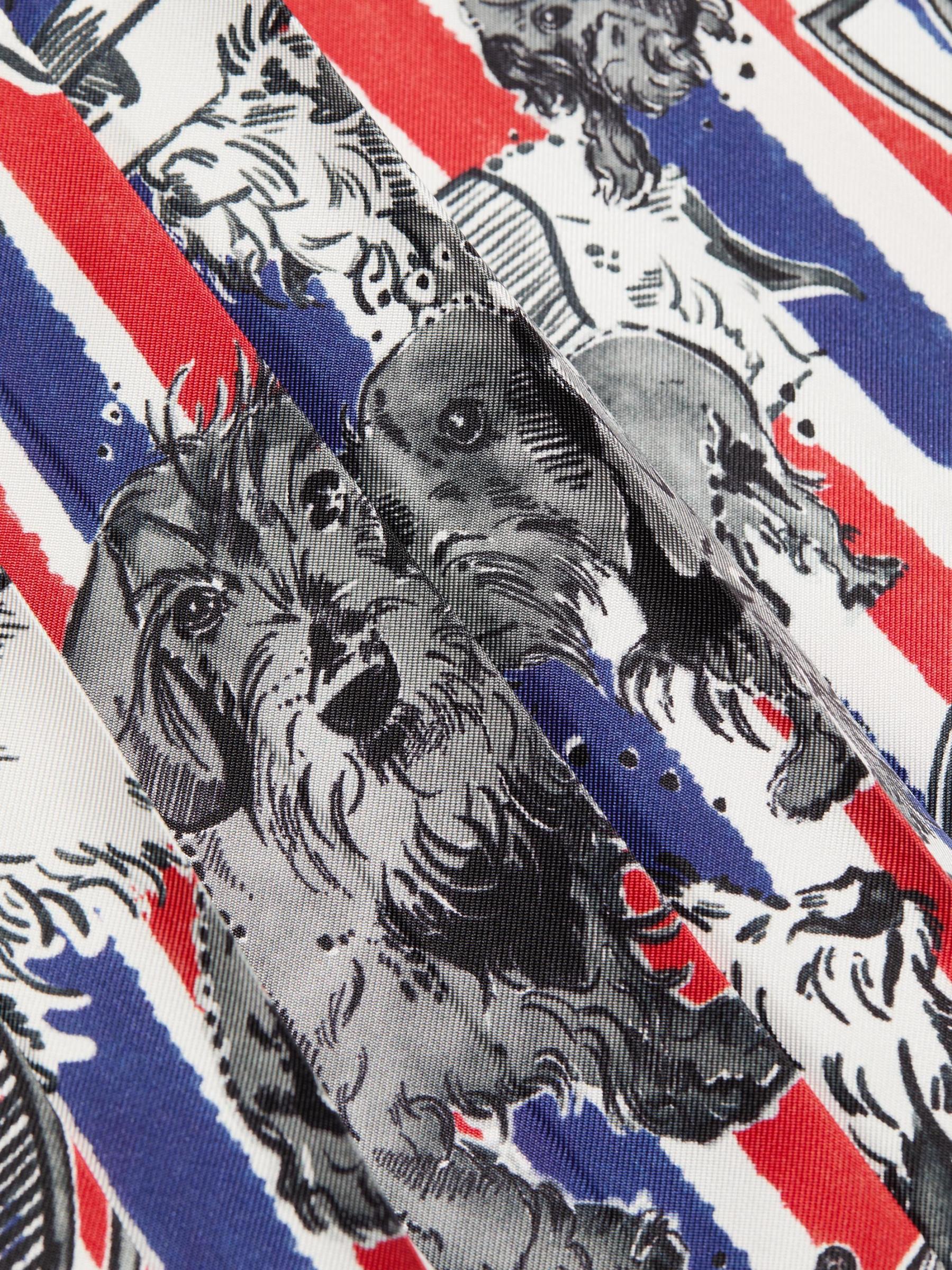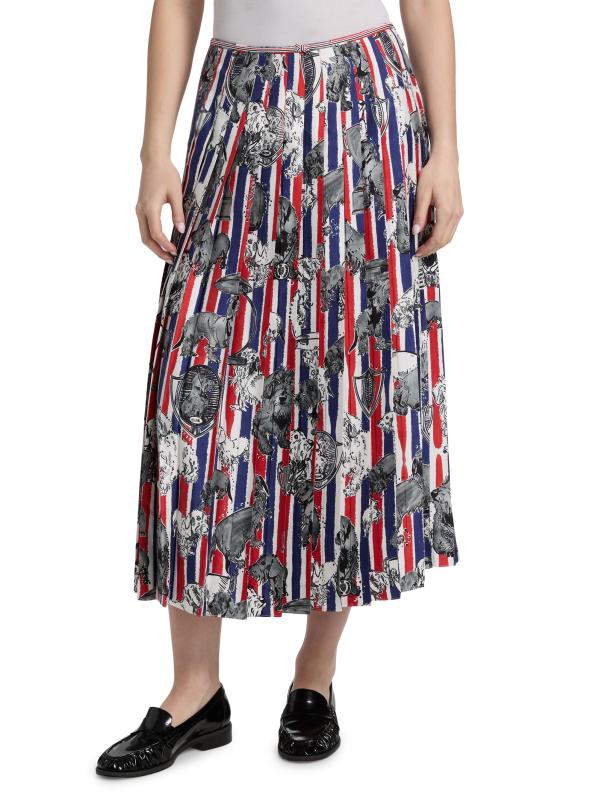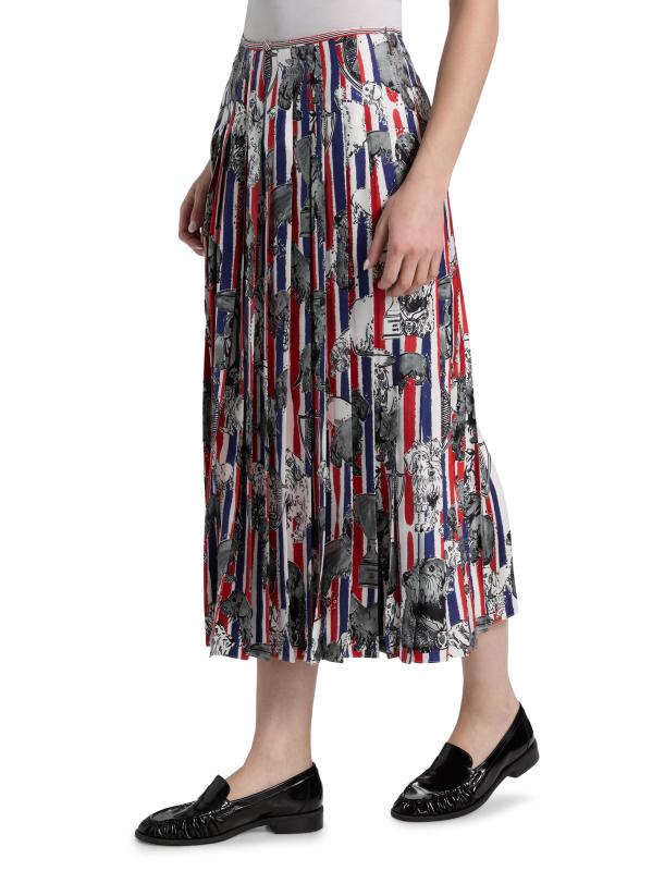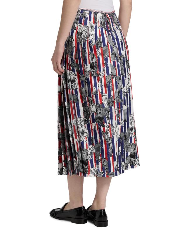 صُنعت هذه التنورة المتوسطة ذات الثنيات من Thom Browne في إيطاليا من نسيج الحرير. تم تزيين هذا الطراز بالألوان الثلاثة المميزة وطبعة كلب هيكتور.