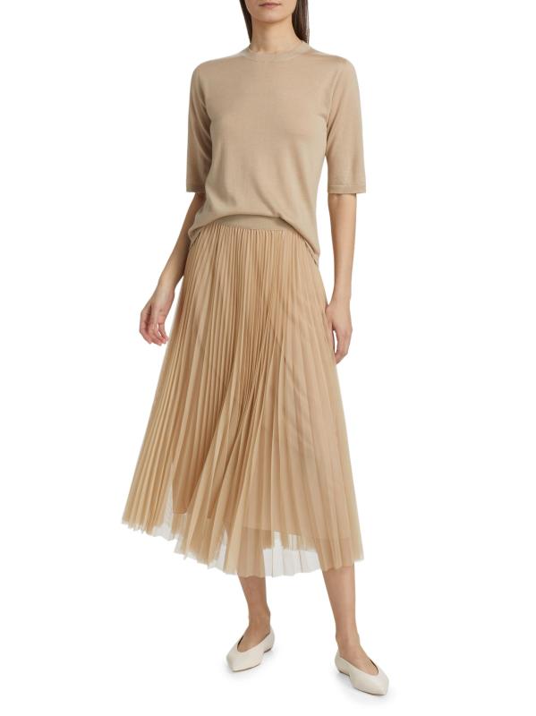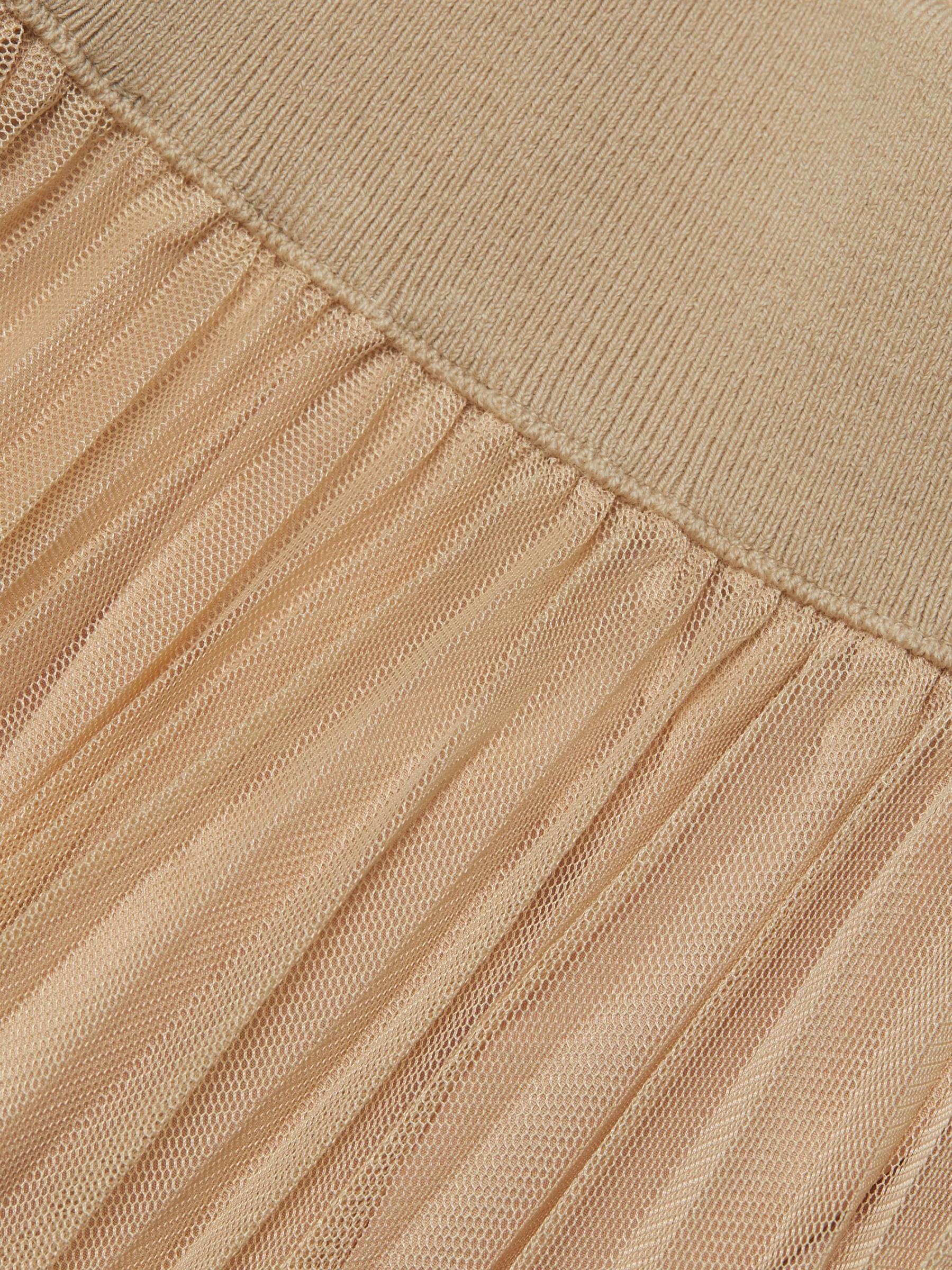 تتميّز التنورة المتوسطة من فابيانا فيليبي، المصنوعة في إيطاليا، بتصميم من التول المطوي الذي يتميّز بحزام خصر مطاطي واسع.