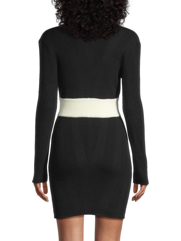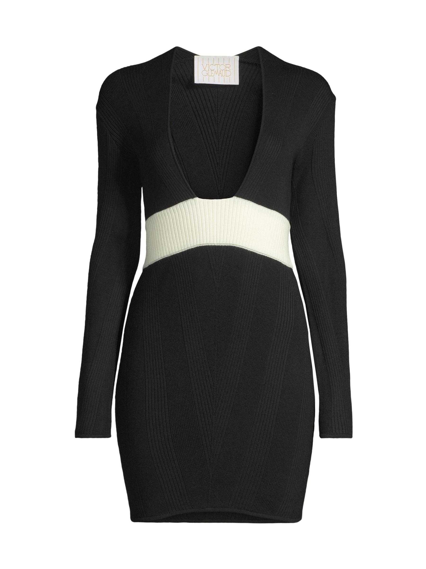 يتميز هذا الفستان القصير من Victor Glemaud بأكمام طويلة وتصميم أنيق للجسم مصنوع من صوف الميرينو المحبوك المضلع. فتحة رقبة واسعة على شكل حرف U ترفع من المظهر.