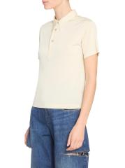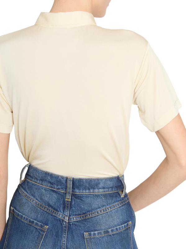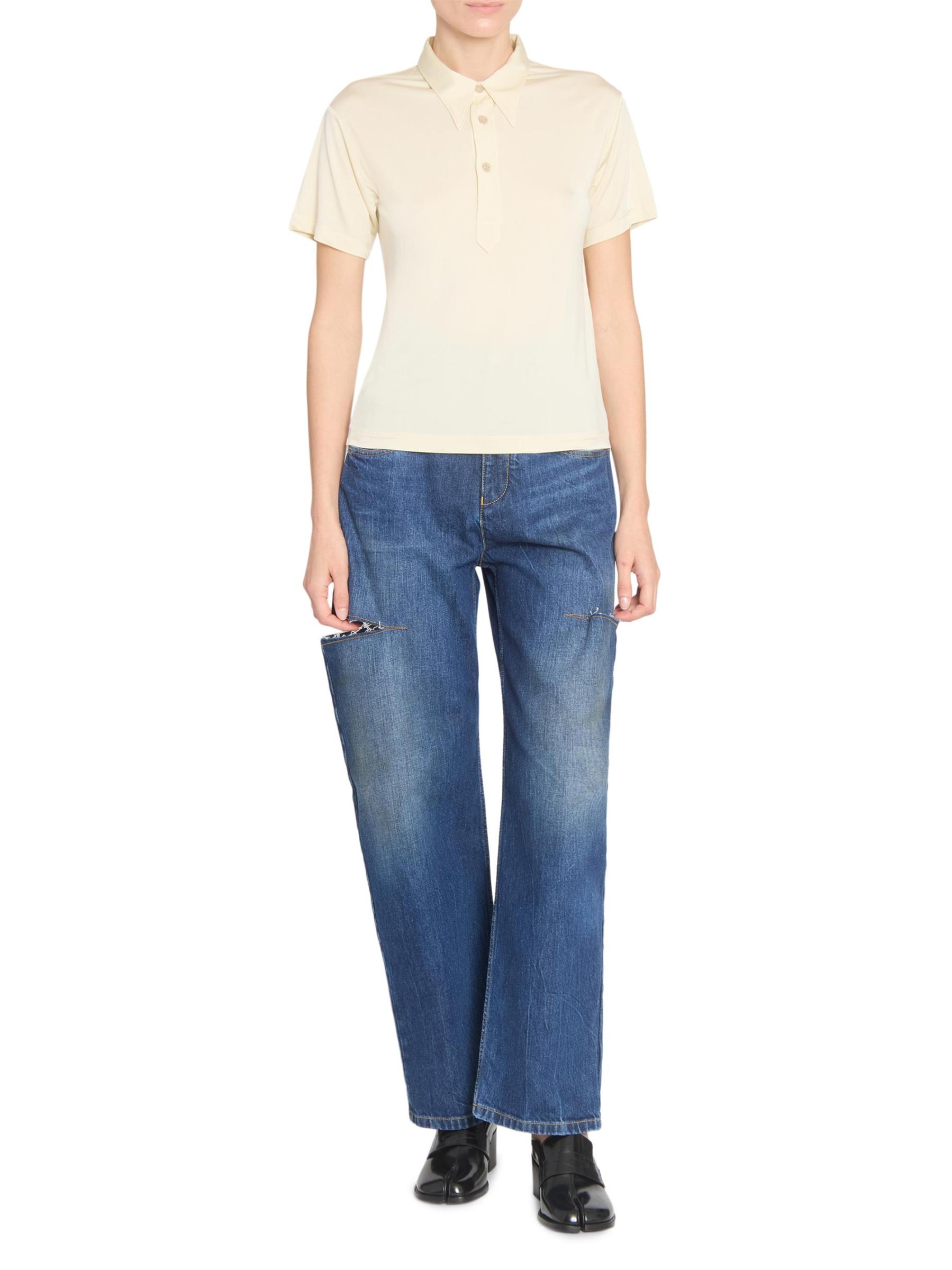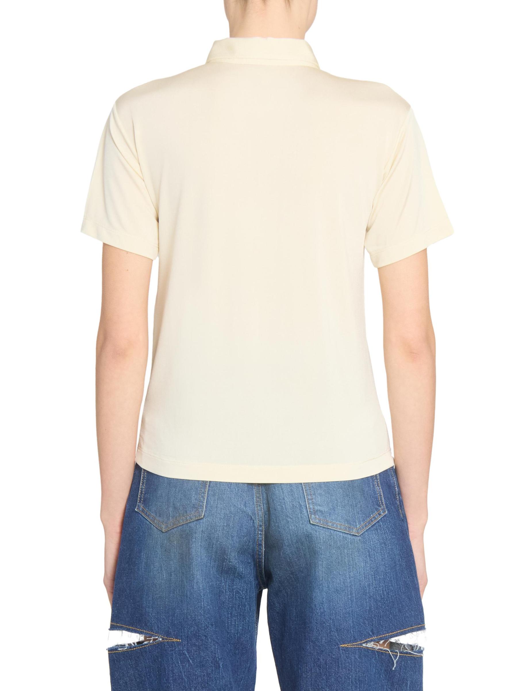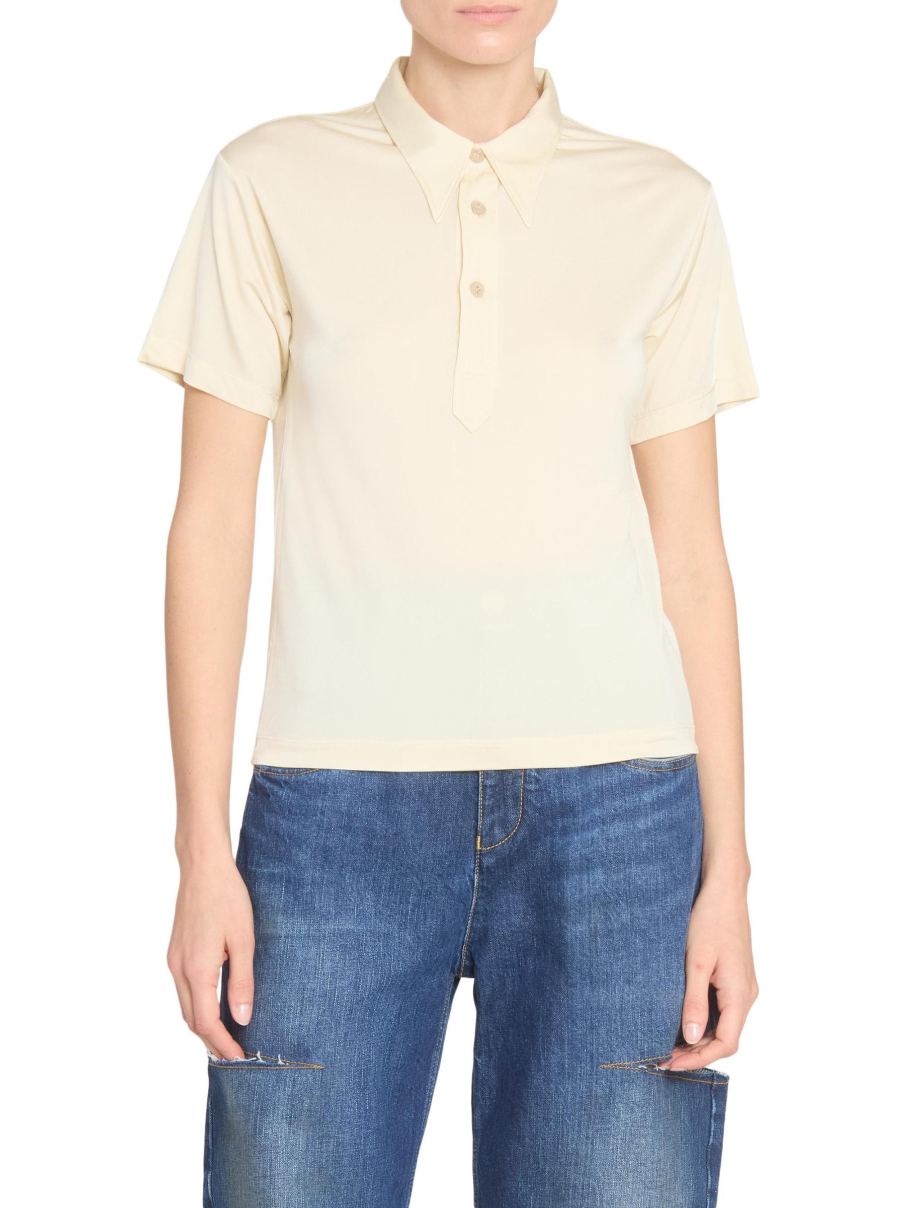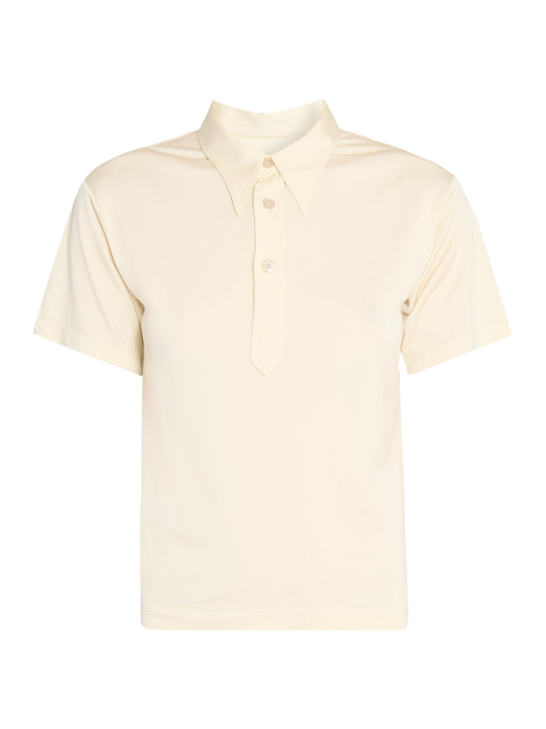 صُنع قميص بولو بأكمام قصيرة من Maison Margiela في إيطاليا، ويتميز بياقة مدببة بشكل مبالغ فيه.