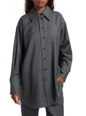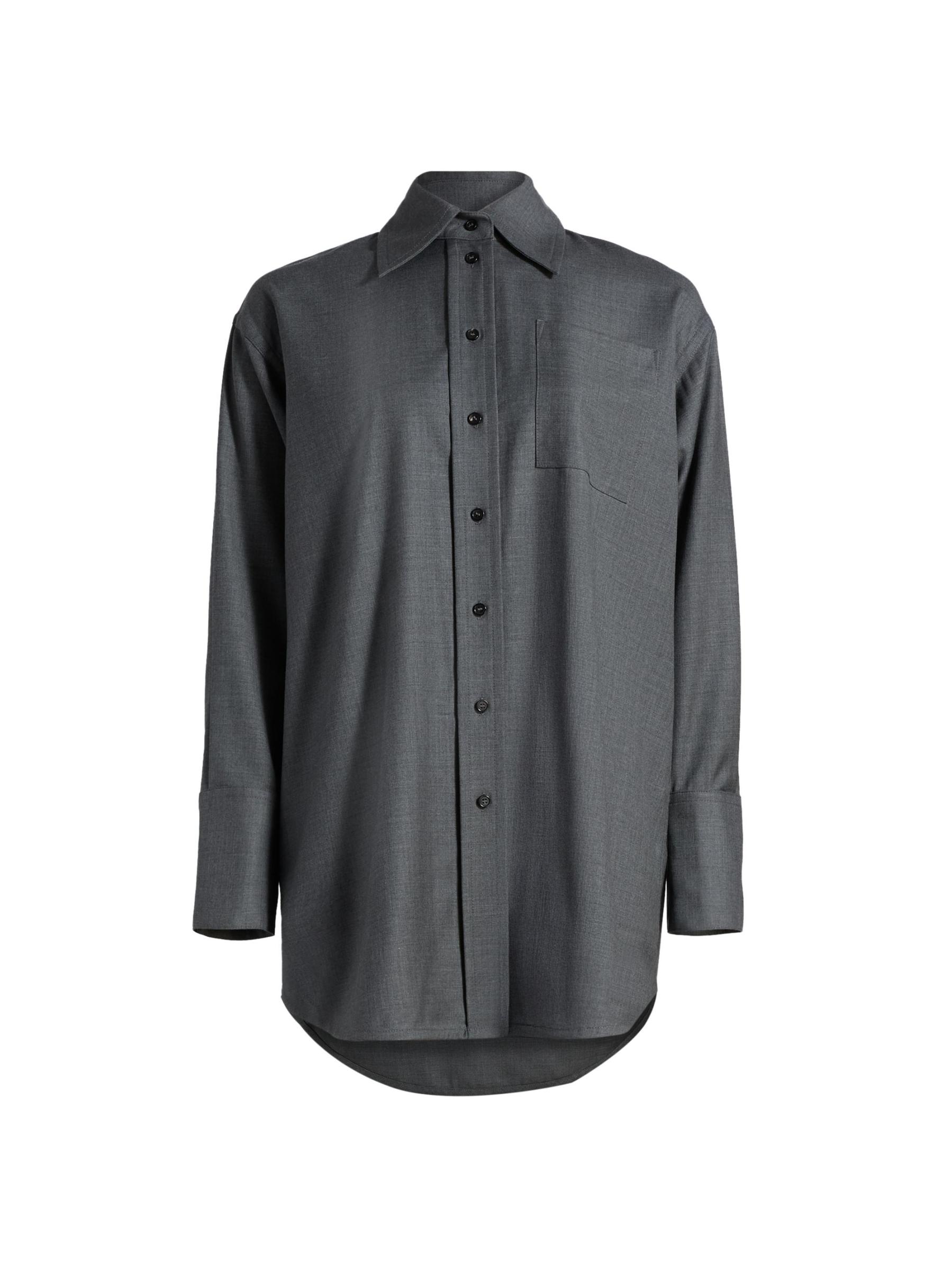 هذا القميص الخارجي من Co مصنوع من الصوف ويتميز بياقة مدببة وجيب خارجي على الصدر.ياقة مدببة أساور بأزرار بأكمام طويلة جيب خارجي على الصدر حافة على شكل ذيل القميص إغلاق بأزرار أمامية صوف بنسبة 100% تنظيف جاف مستوردة