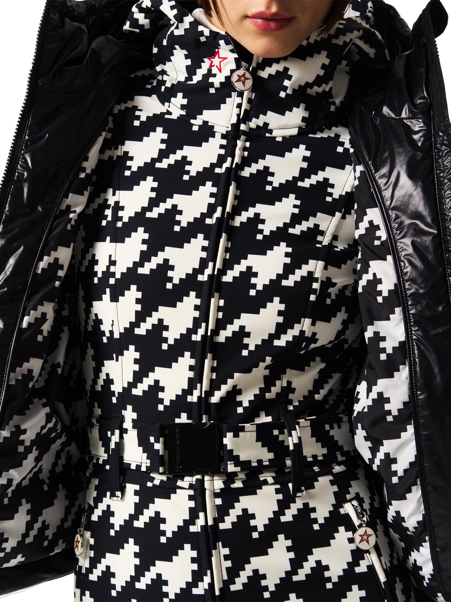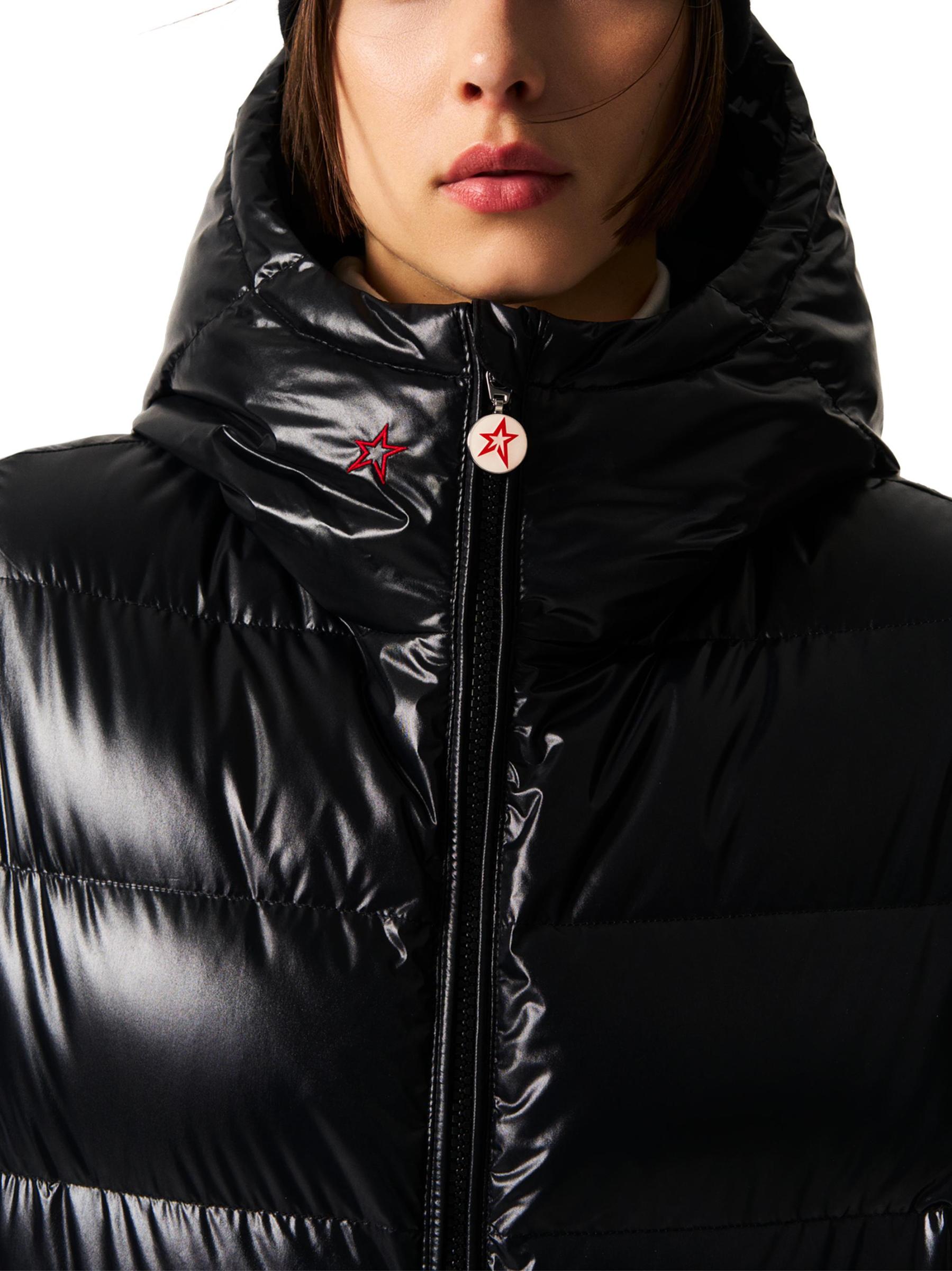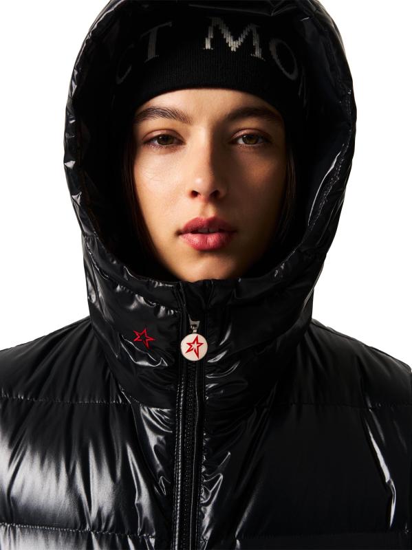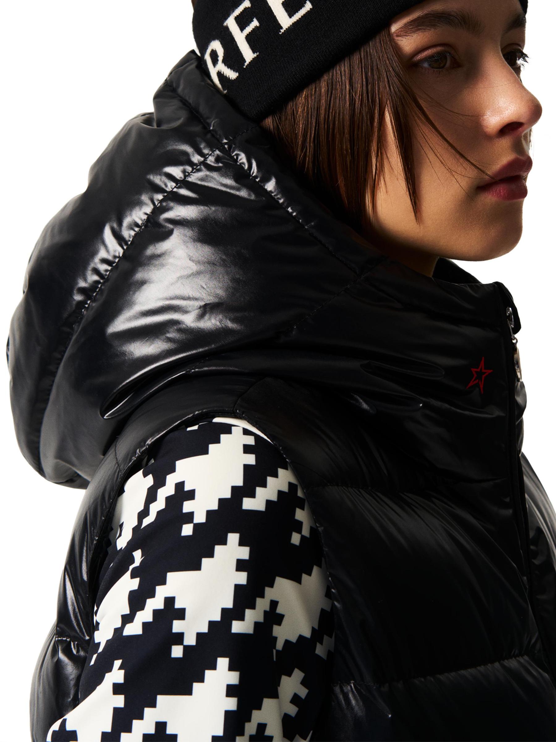 تضفي اللمسة النهائية اللامعة مزيدًا من الأناقة على سترة Polar Flare المليئة بالأسفل من Perfect Moment، والمصممة ببطانة أفقية وغطاء رأس فخم.