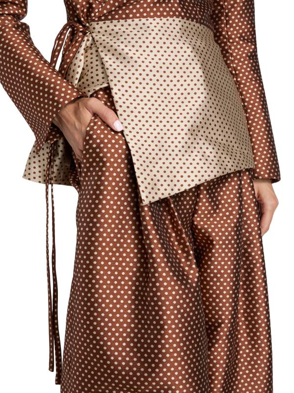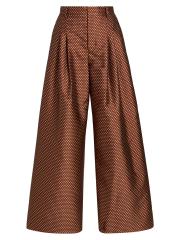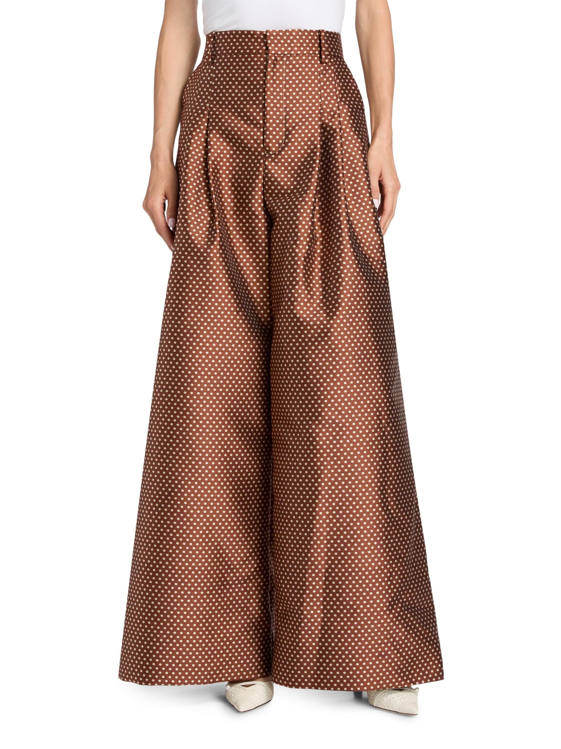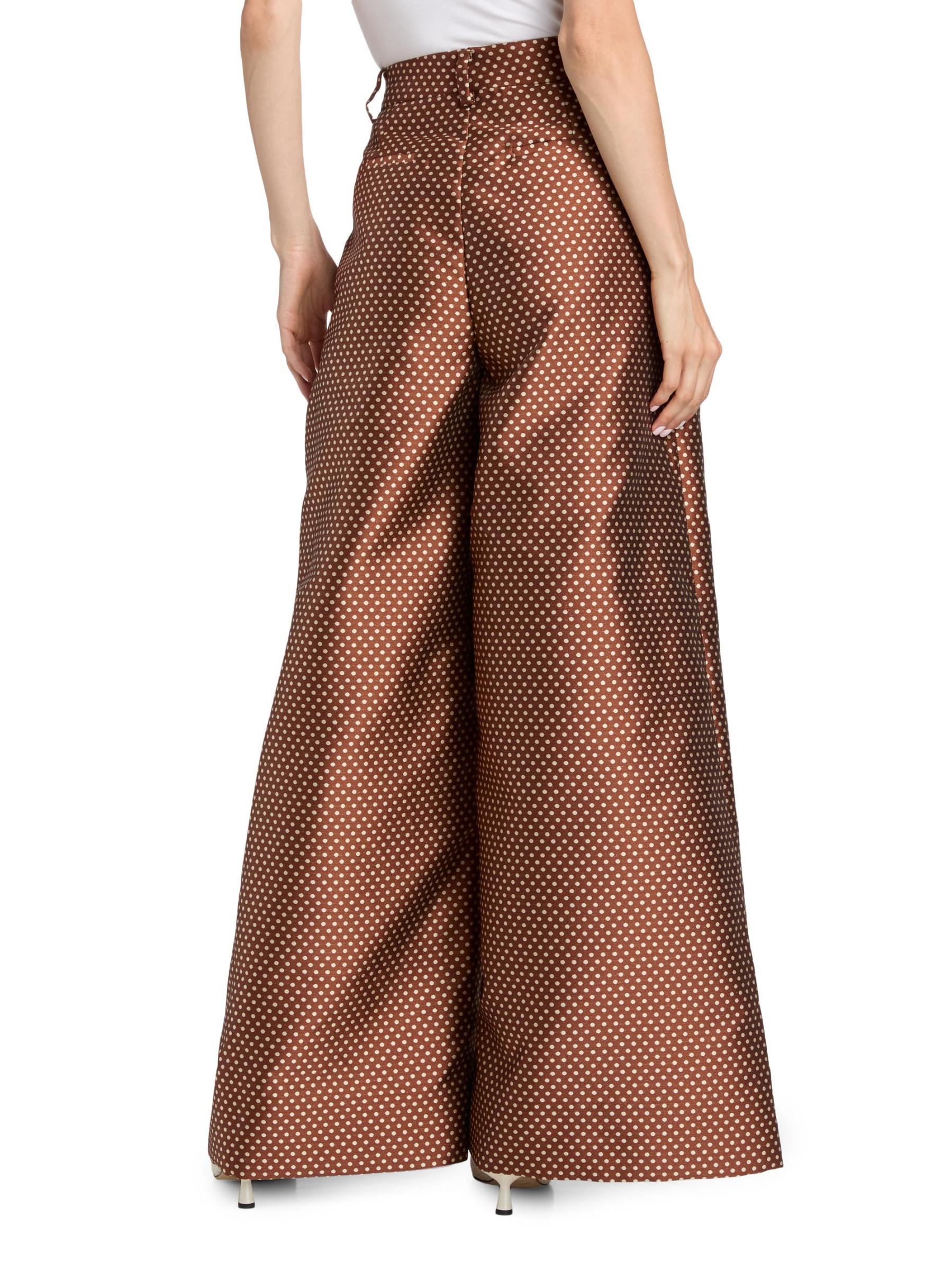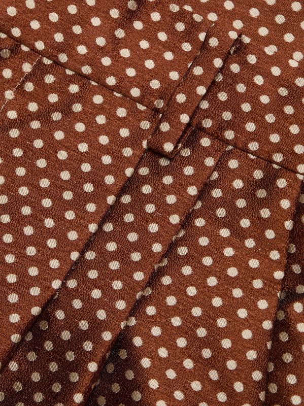 صُمم هذا البنطال من روزي أسولين بتصميم واسع الساق ويتميز بطيات أمامية. تم تزيين هذا الزوج بنقشة البولكا دوت.