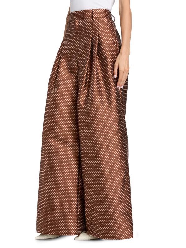 صُمم هذا البنطال من روزي أسولين بتصميم واسع الساق ويتميز بطيات أمامية. تم تزيين هذا الزوج بنقشة البولكا دوت.جيوب جانبية منزلقة جيبان خلفيان إغلاق بسحّاب مزوّد بخطاف وقضيب 100% بوليستر تنظيف جاف صُنع في إيطاليا