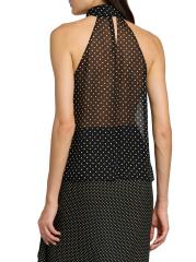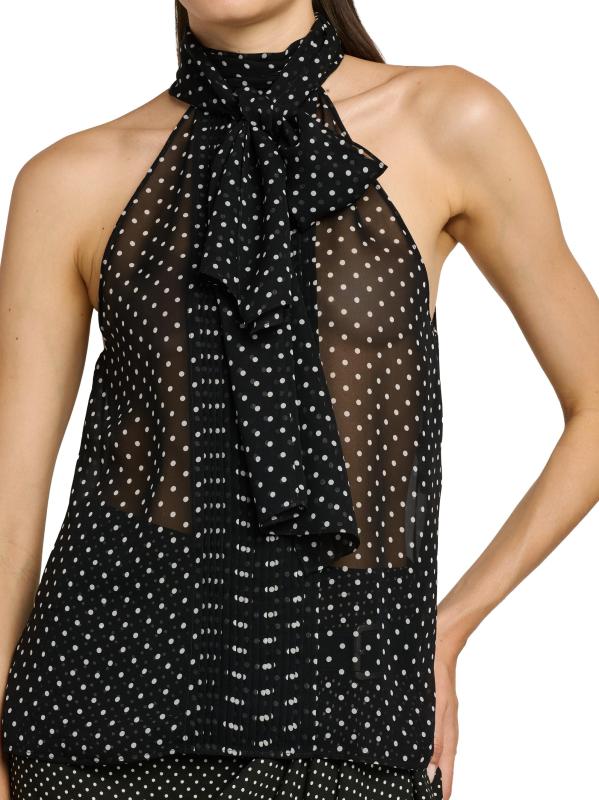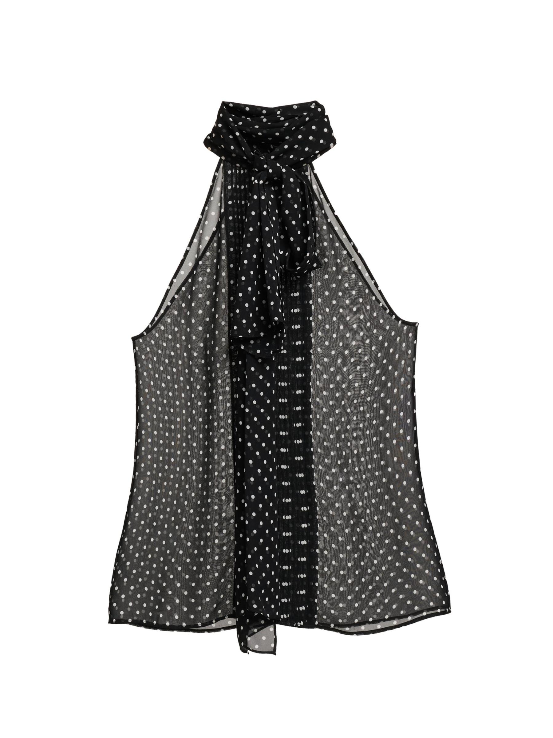 بلوزة حريرية بلا أكمام بياقة منقّطة
