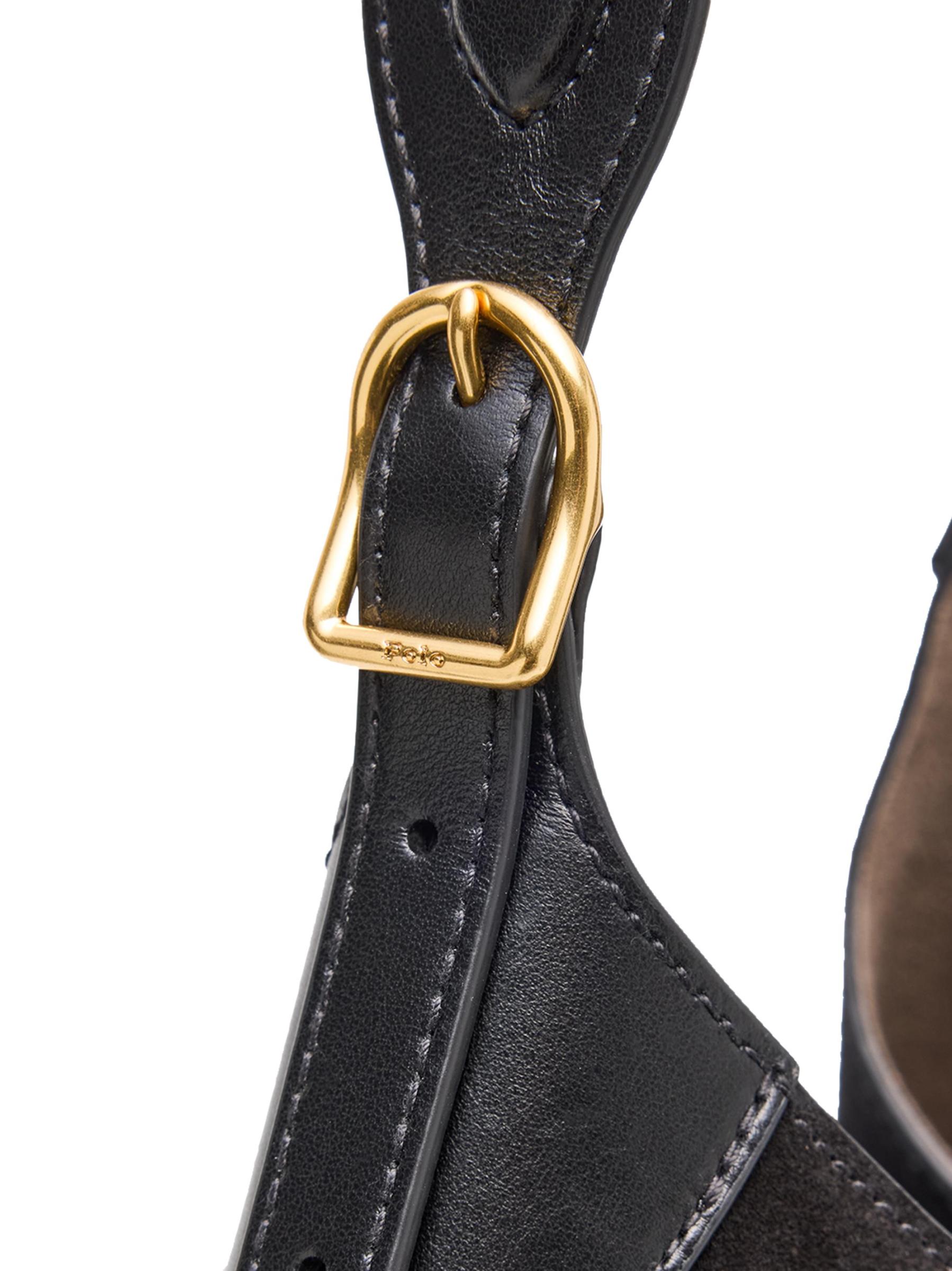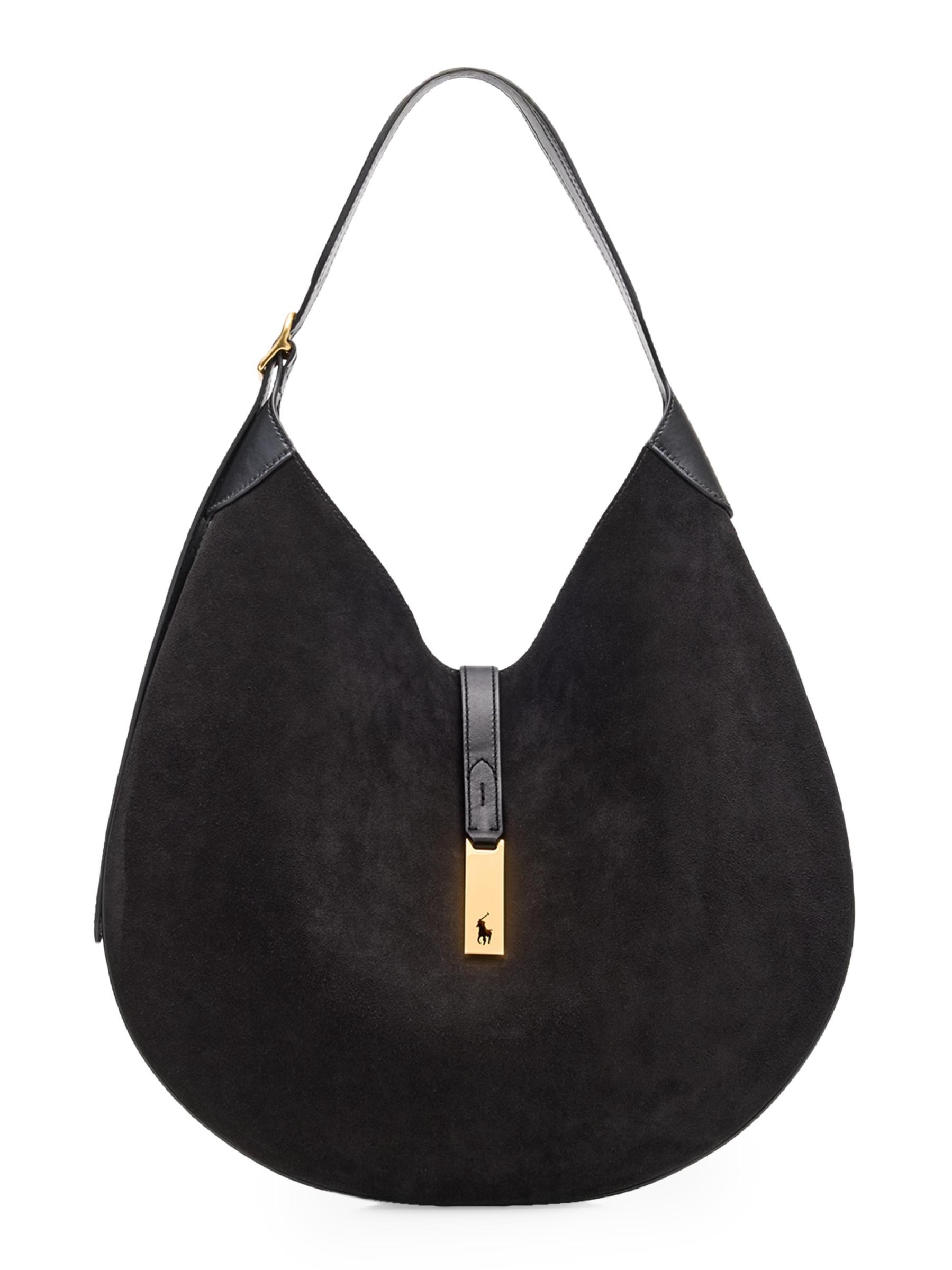 من مجموعة بولو آي دي. حقيبة الكتف هذه من بولو رالف لورين مصنوعة من الجلد المدبوغ مع تصميم واسع بجزئين ولوحة نحاسية تُظهر فتحة المهر المميزة.