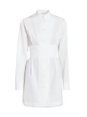 يستمد فستان Alaïa الصغير المصنوع من البوبلين الإلهام من الملابس الرجالية مع هذا التصميم الظلي المصمم على طراز التوكسيدو، والذي يتميز بحزام مستوحى من الكمبريند وحافة على شكل ذيل القميص.