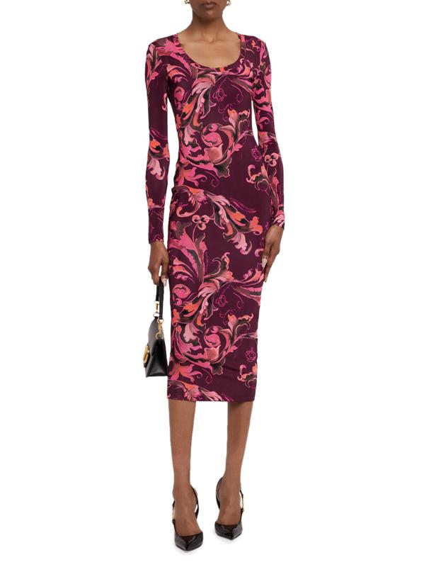 يتميّز هذا الفستان المتوسط من فيرساتشي جينز كوتور، المصنوع من الجيرسيه الشبكي الناعم، بزخرفة باروكو المصنوعة بالكامل من البورسلين وبأكمام طويلة.سكوبنك أكمام طويلة تسحب فيسكوز/إيلاستين غسيل يدوي مستوردة