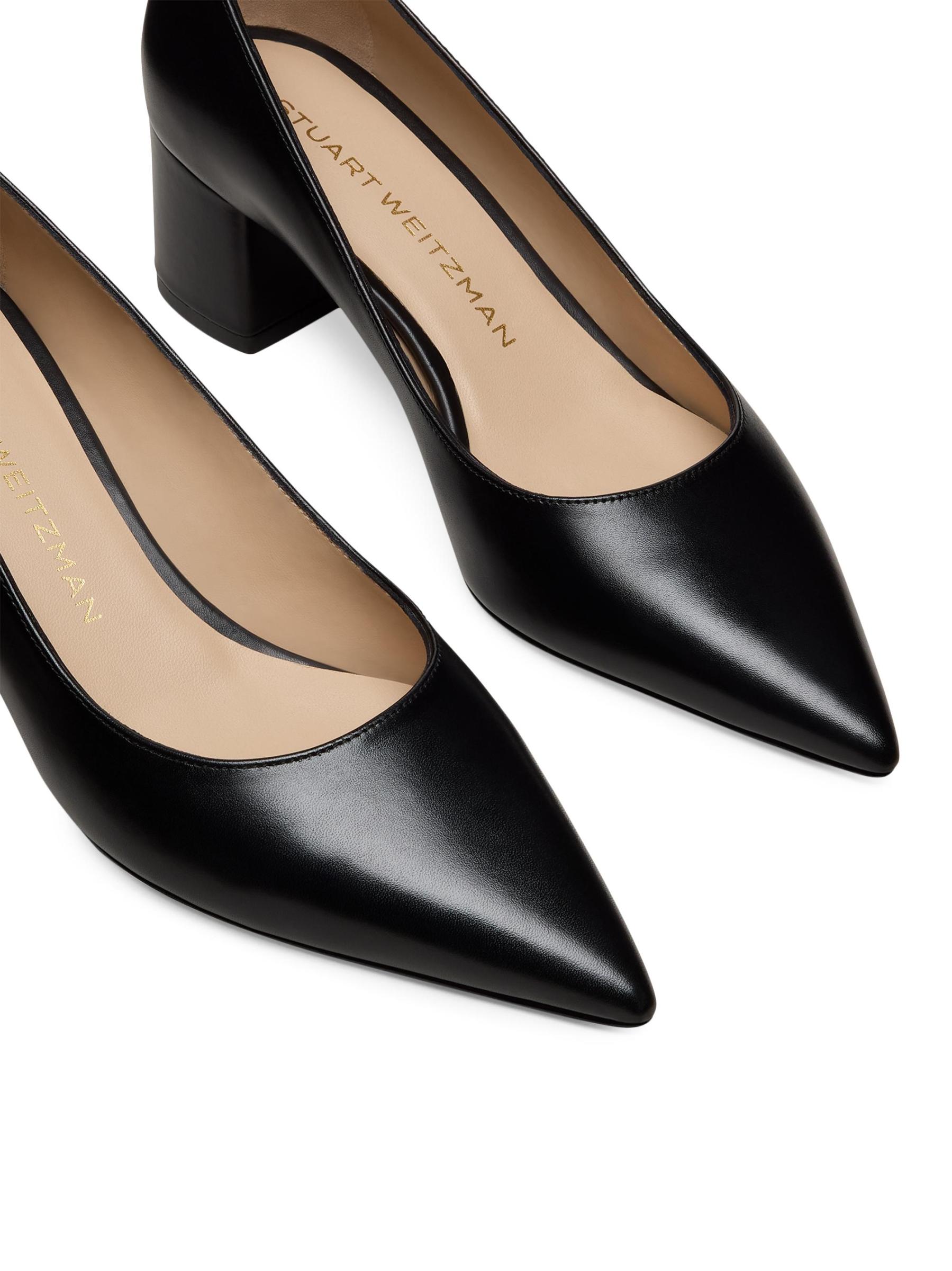 حذاء باور هذا من Stuart Weitzman مصنوع من الجلد بمقدمة مدببة وكعب عريض لمظهر انسيابي.