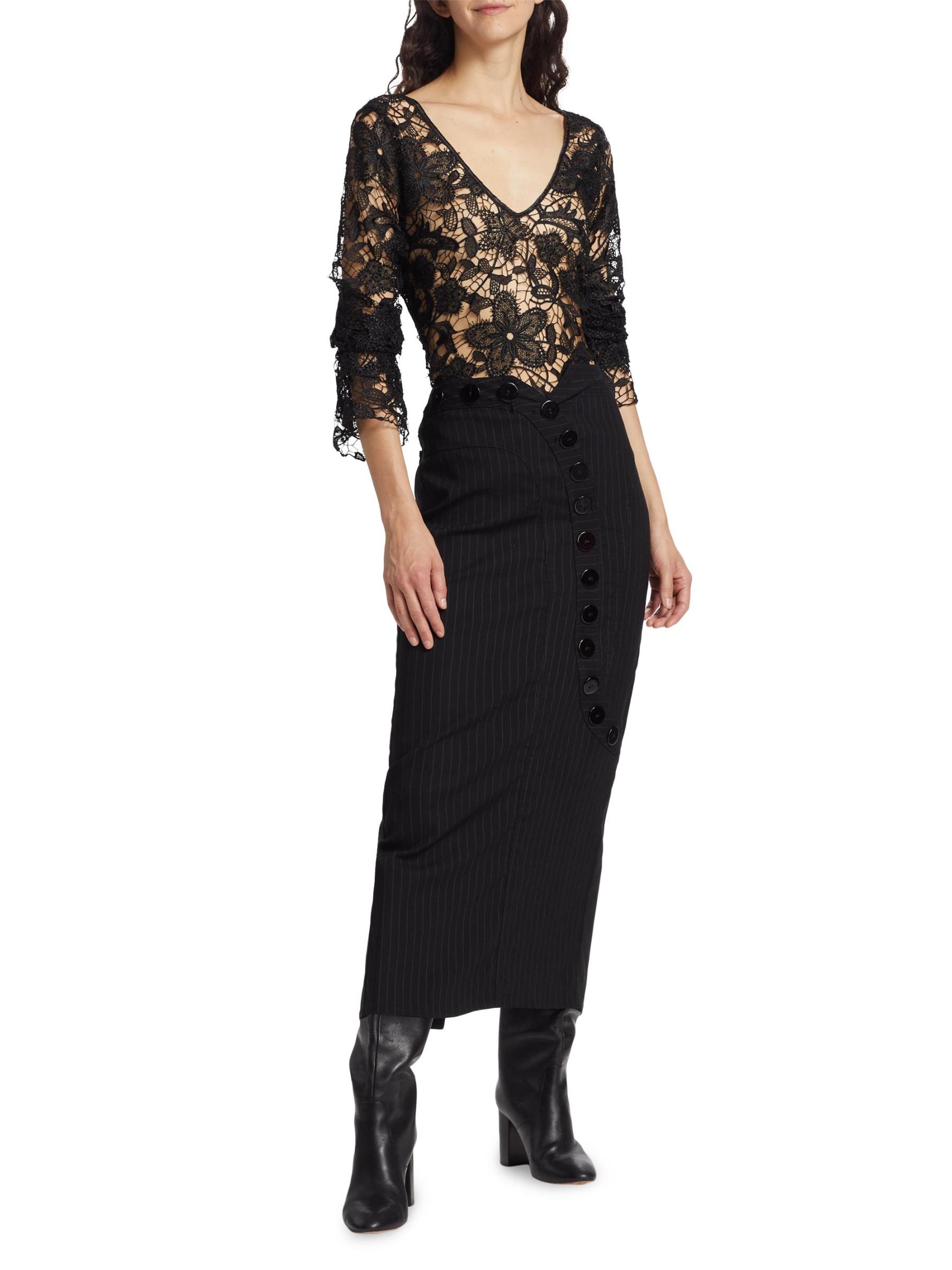 من المقدمة: مجموعة حكايات آما. تتميّز هذه البلوزة ذات الأكمام الطويلة من House of Aama بتصميم خارجي شفاف من الكروشيه، وتكتمل بتقويرة واسعة على شكل حرف V وتصميم من الدانتيل المزهّر.رقبة واسعة على شكل حرف V أكتاف منسدلة أكمام طويلة يغرق في ظهر التلفزيون تقليم صدفي تسحب 100% بوليستر تنظيف جاف صُنع في الولايات المتحدة الأمريكية من قماش أمريكي