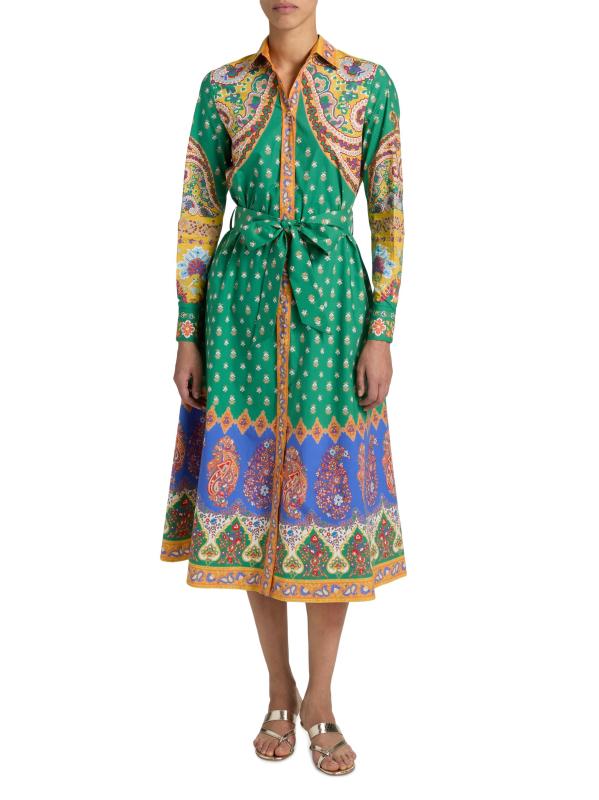 يُظهر فستان Etro متوسط الطول المصنوع من القطن الخفيف الطباعة المشرقة المميزة للعلامة التجارية. تم تصميمه بحزام قابل للربط الذاتي لتشكيل الخصر، وينسجم مع تنورة كاملة على شكل حرف A مع جيوب على شكل درزات.طوق سبريد أساور بأزرار بأكمام طويلة خصر قابل للربط جيوب جانبية على درزات إغلاق بأزرار أمامية قطن بنسبة 100% تنظيف جاف صُنع في إيطاليا