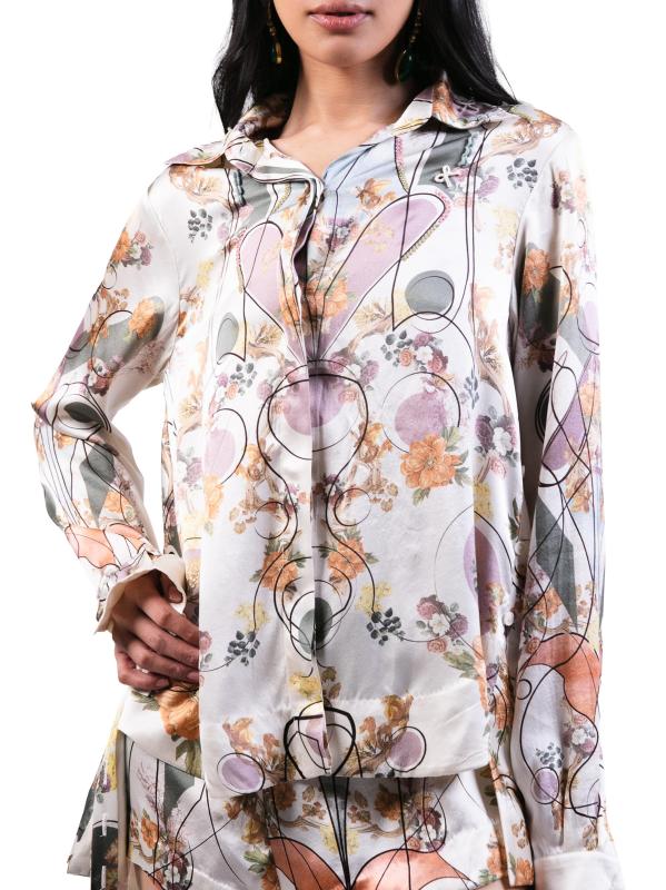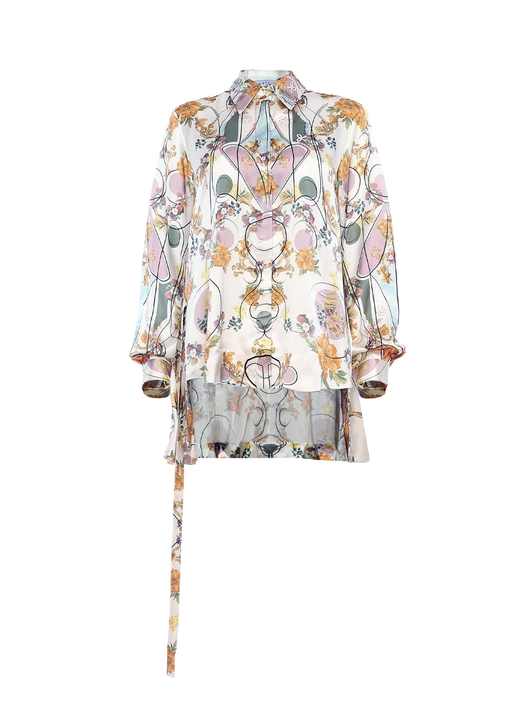 هذا القميص المطبوع من AKOK Anamika Khanna مصنوع من الحرير ومصمم في صورة ظلية عالية ومنخفضة.طوق سبريد أساور بأزرار بأكمام طويلة مربوط إغلاق بأزرار أمامية مخفية حرير بنسبة 100% تنظيف جاف مستوردة
