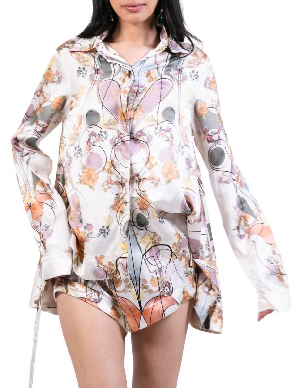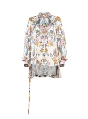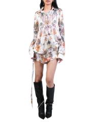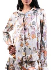 قميص حريري مطبوع برقبة عالية