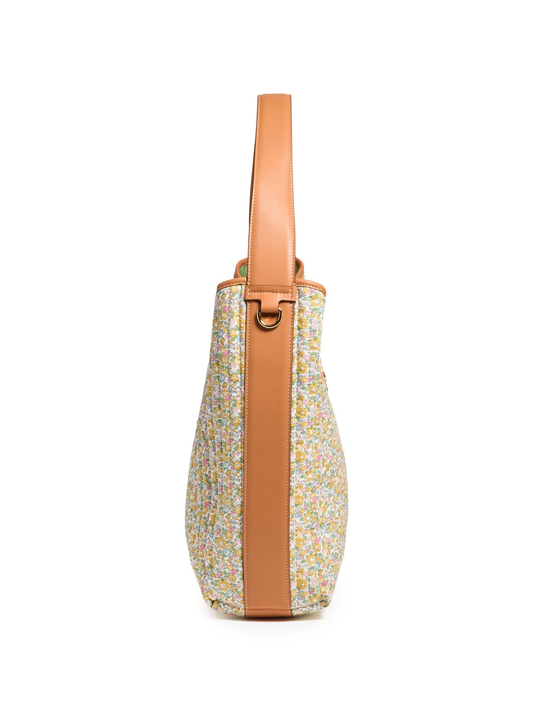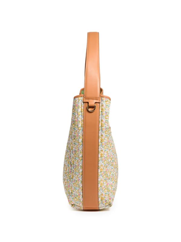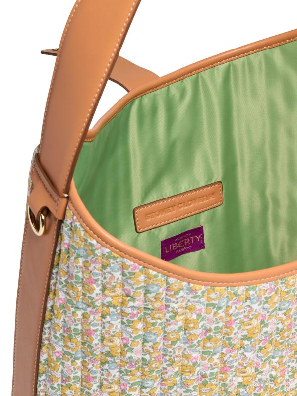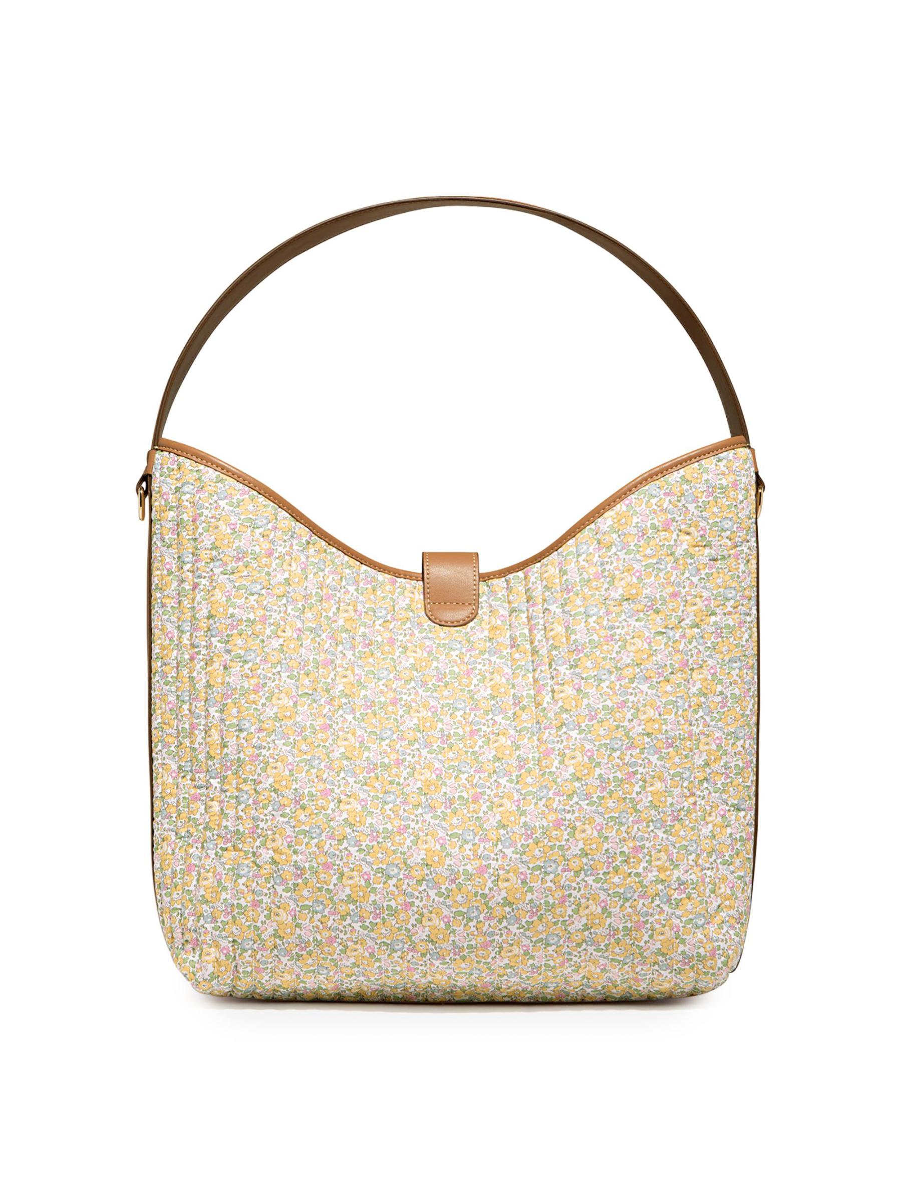 حقيبة هوبو المترهلة هذه من Stoney Clover Lane مصنوعة من قطن Liberty الزهري المميز للعلامة التجارية وتتميز بمقبض علوي وحزام قابل للإزالة وزر إغلاق.