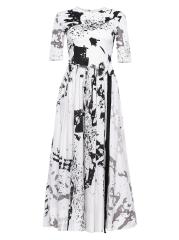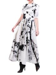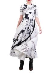 فستان ماكسي من القطن القابل للتمدد بطبعة