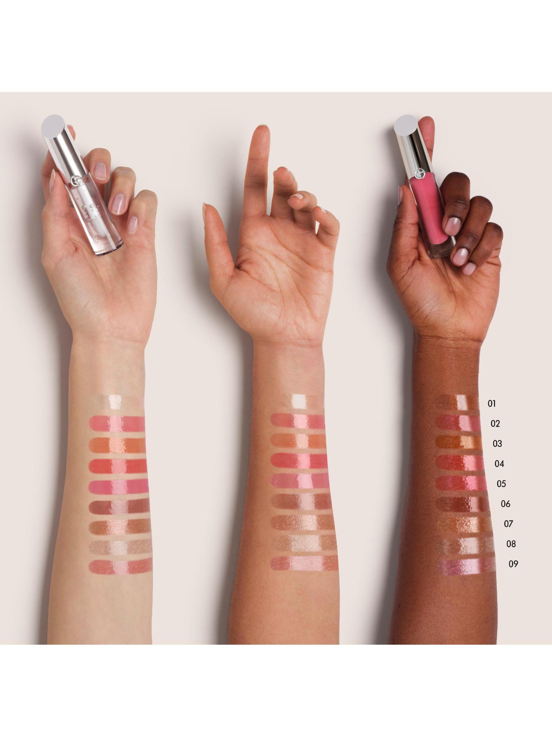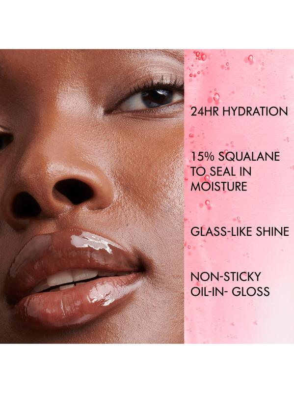 تجمع هذه التركيبة خفيفة الوزن بالزيت اللامع بين 15% من السكوالين لحماية حاجز الشفاه وتضيف لمعانًا يشبه الزجاج ولمسة نهائية موشورية ترضي جميع ألوان البشرة. بفضل الشفافية الكريستالية لكل ظل من ظلال الشفاه، من الشفاف والعاري والوردي والأحمر، يعزز اللون اللامع اللون الطبيعي للشفاه.