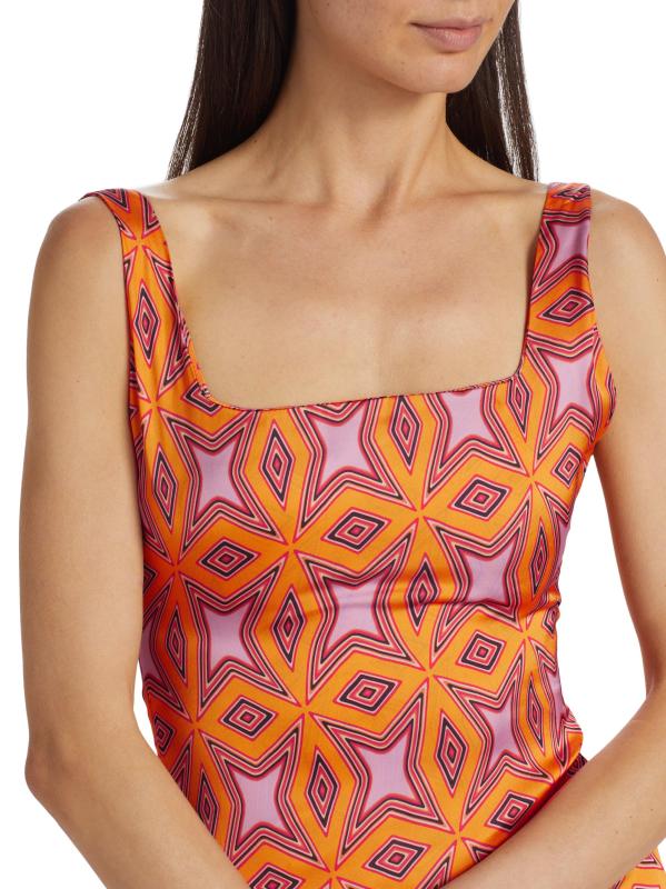 يتميز فستان Priyagold الطويل من Claude Kameni بطبعة هندسية جريئة. خط العنق المربع يكمل التصميم.رقبة مربعة بدون أكمام إغلاق بسحّاب جانبي 100% بوليستر يُغسل في الغسالة صُنع في الولايات المتحدة الأمريكية