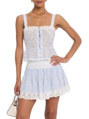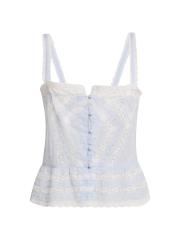 من LoveShackFancy، صُنعت بلوزة Pruitt من قماش قطني خفيف الوزن مع ألواح من الدانتيل وتطريز الأزهار في جميع الأنحاء.