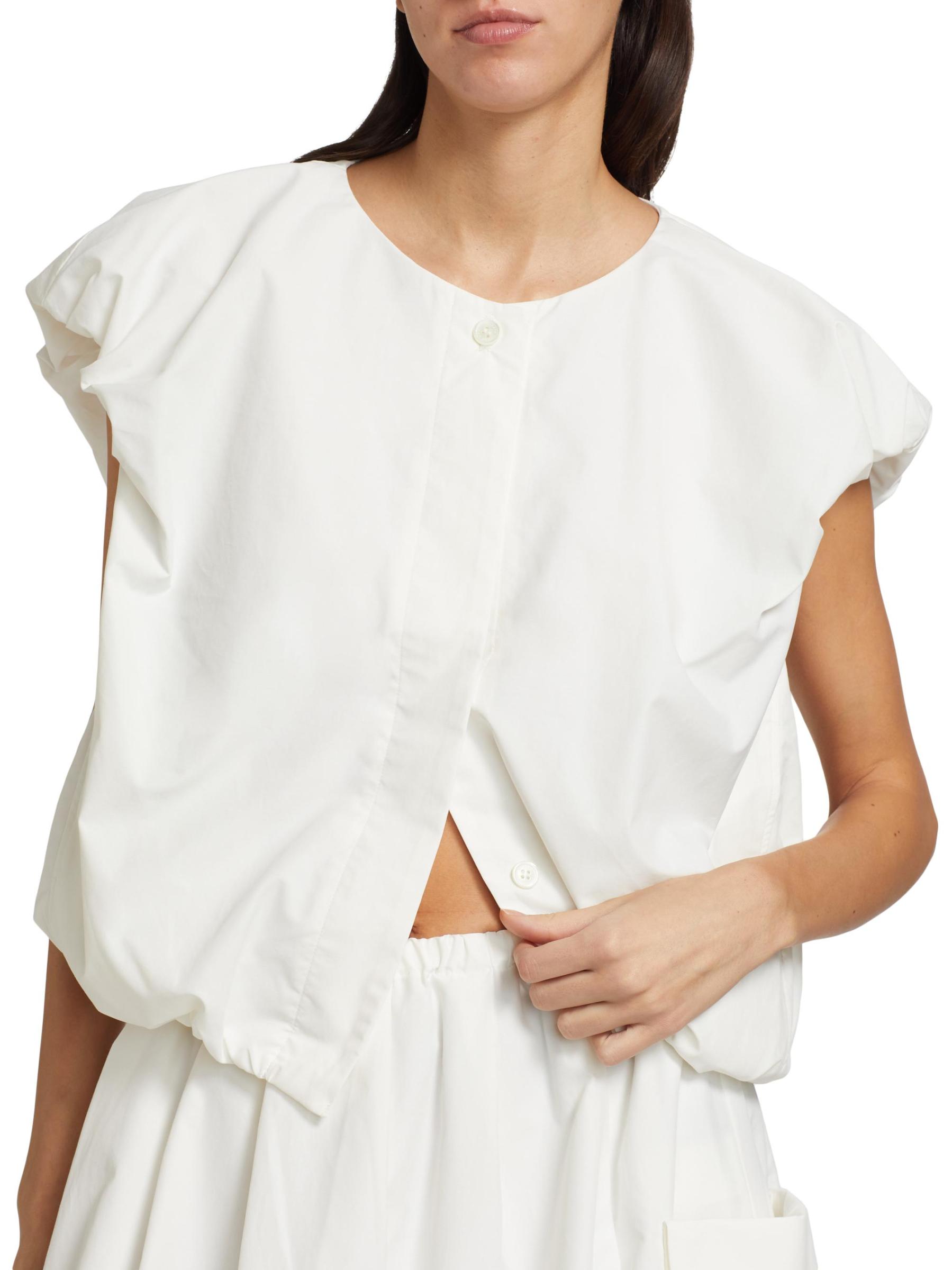 من مجموعة سارتوريال راونس. تتميّز بلوزة باراشوت هذه المصنوعة من مزيج القطن والنايلون من Barneys New York بأكمام قبعة منفوخة وصورة صندوقية.