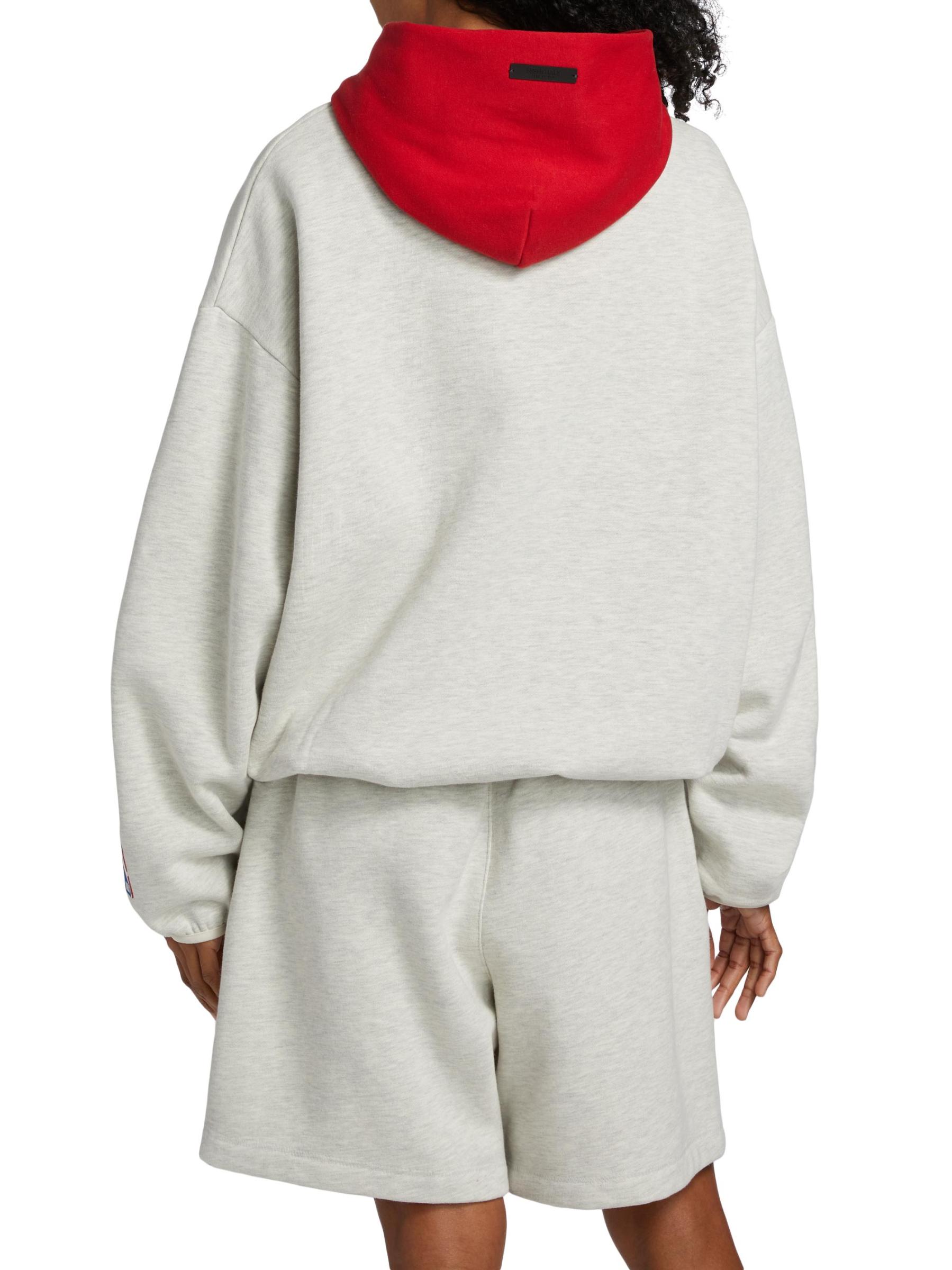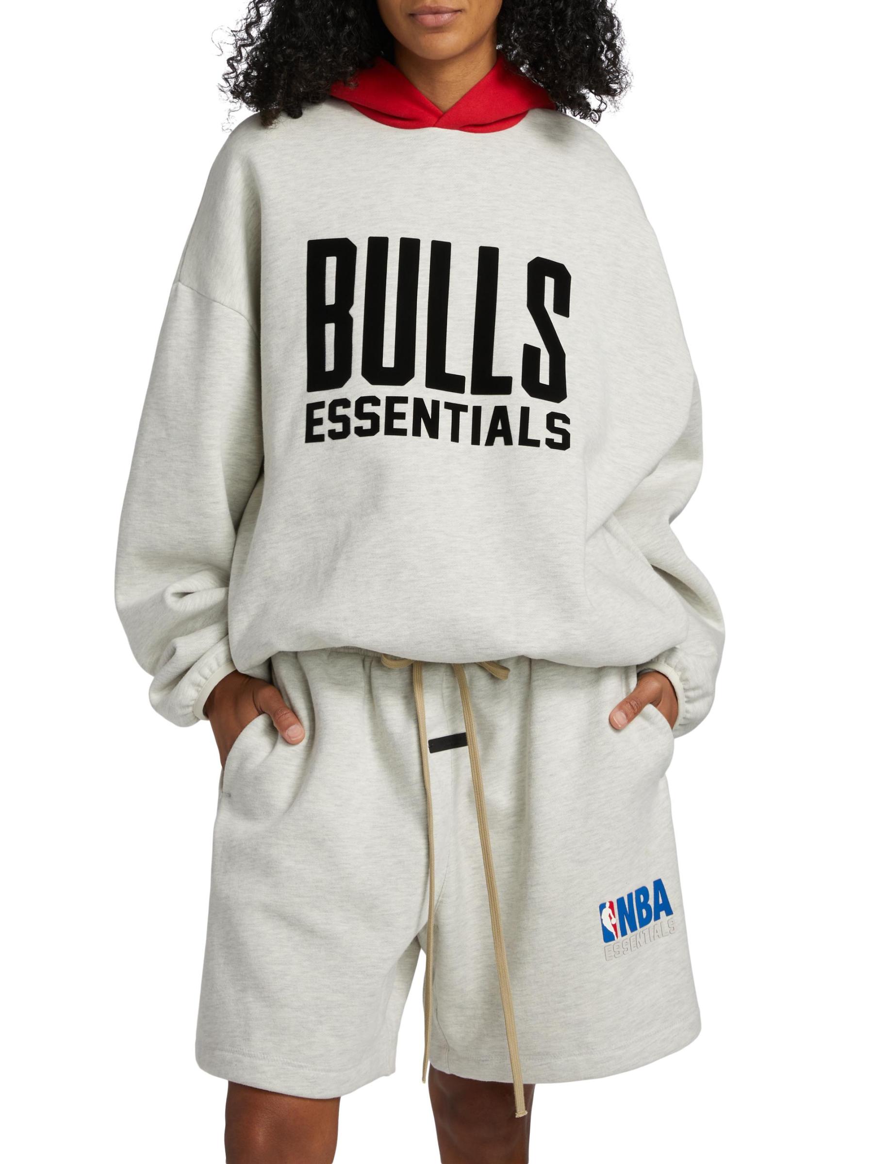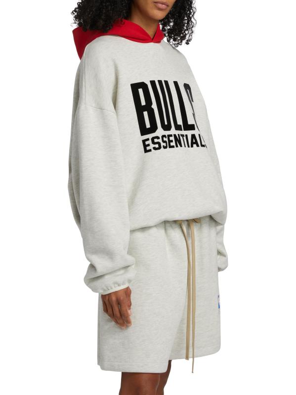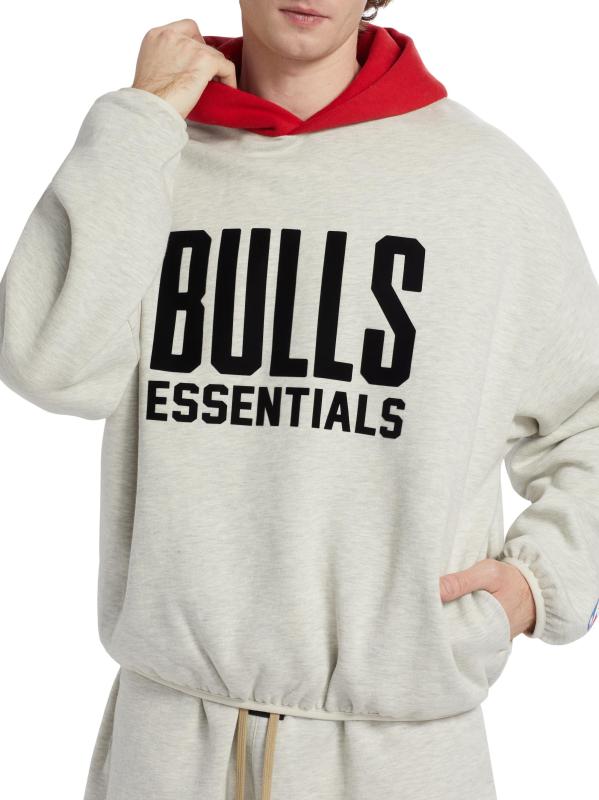 تتميّز سترة Bulls Hoodie من Fear of God المصنوعة من مزيج القطن والصوف بشعار «BULLS ESSENTIALS» المطاطي الناعم على الصدر وشعار NBA® الأيقوني على الكفة اليسرى. تضفي الزخرفة المطاطية مزيدًا من الراحة على هذا النمط.
