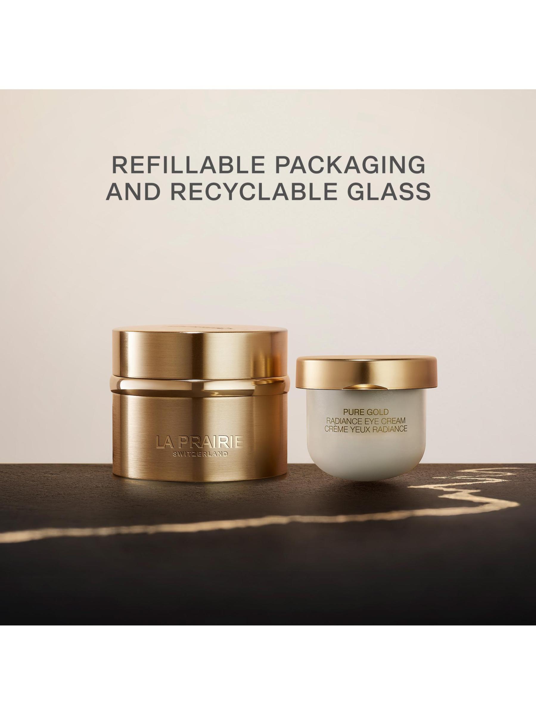 ضعيه صباحًا ومساءً بعد التنظيف والتنغيم وتطبيق Pure Gold Concentrate. باستخدام الملعقة المطلية بالذهب عيار 18 قيراطًا، اغرف كمية بحجم حبة البازلاء من كريم العين. ضعي النقاط على طول منطقة أسفل العين وحتى الصدغين، واستمري في الإيماءة فوق الحاجب باتجاه جسر الأنف وانتهي بوضع النقاط تحت خط الحاجب. قومي بتدليك البشرة بحركة لطيفة بالضغط واللف حتى تمتصها البشرة بالكامل. اتبعي كريم بيور جولد راديانس، الخطوة الأخيرة من طقوس بيور جولد.