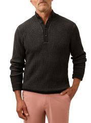 تتميز هذه السترة من ماركة Faherty، المصنوعة من القطن والكشمير بنسيج وافل، بمقاس كلاسيكي وفتحة بربع زر لسهولة الارتداء.