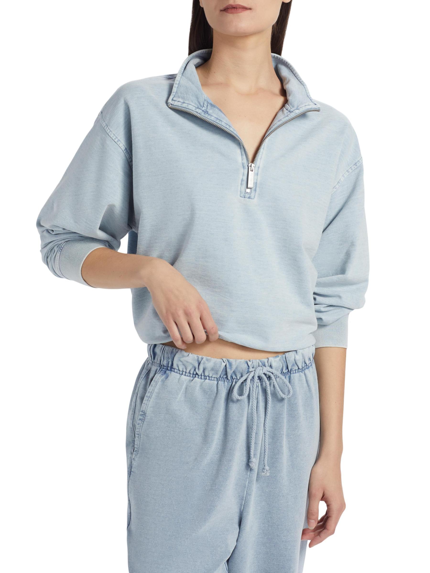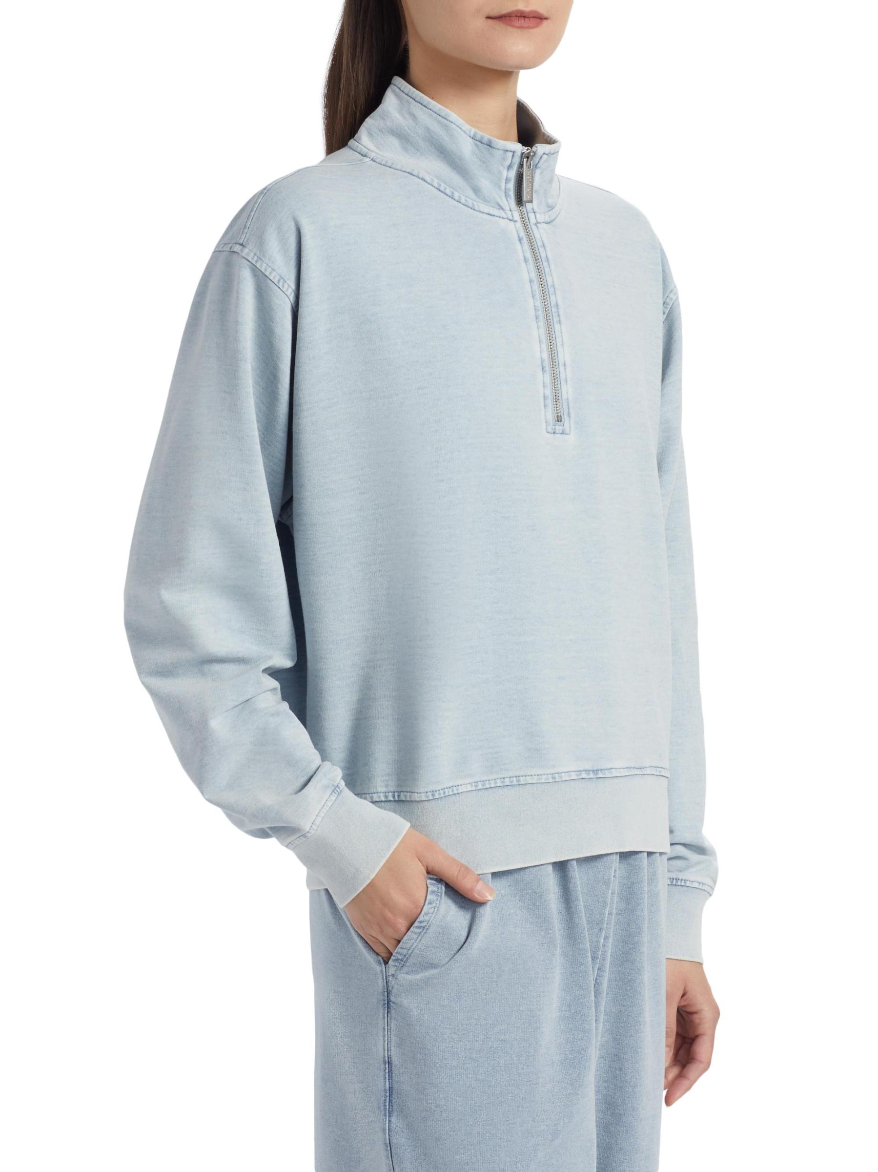 تم تصميم هذا السويت شيرت بأكمام طويلة من Stellae Dux، المصنوع من مزيج القطن المرن، مع ياقة حامل وأكتاف منسدلة وإغلاق بسحّاب ربع.
