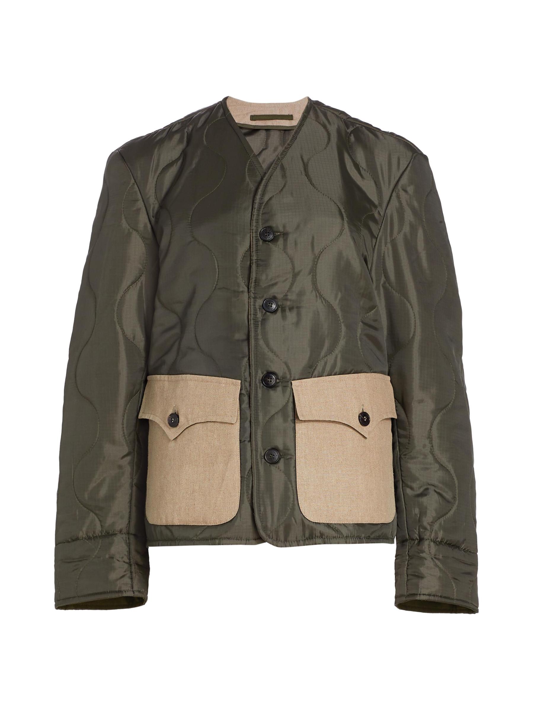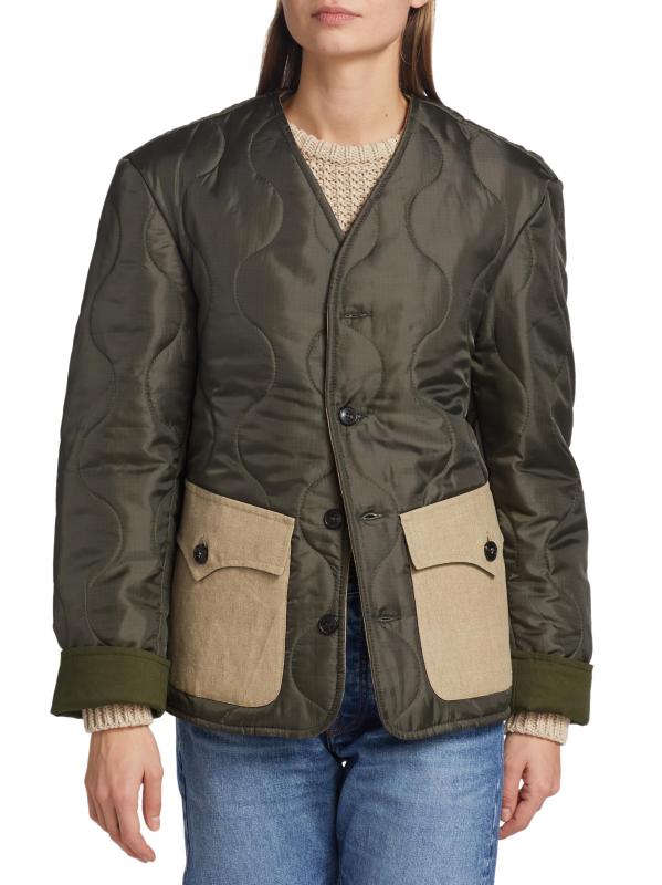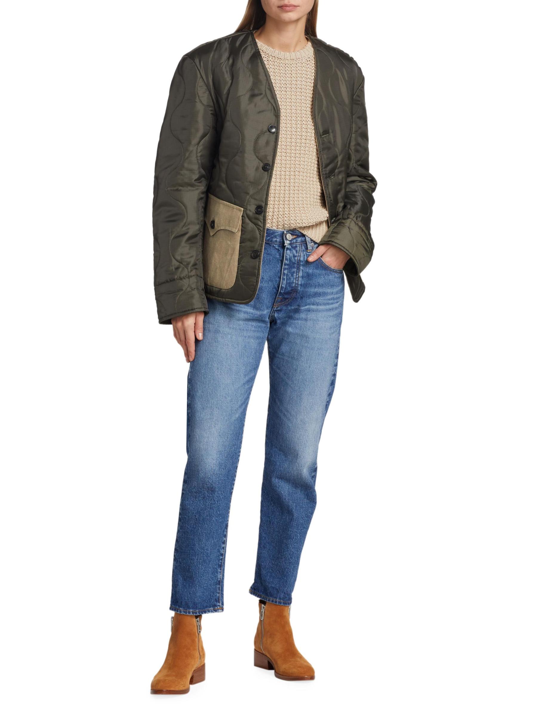 تم تصميم جاكيت Fortela المبطّن برقبة على شكل حرف V وإغلاق بأزرار أمامية وجيوب مرقعة بأزرار.