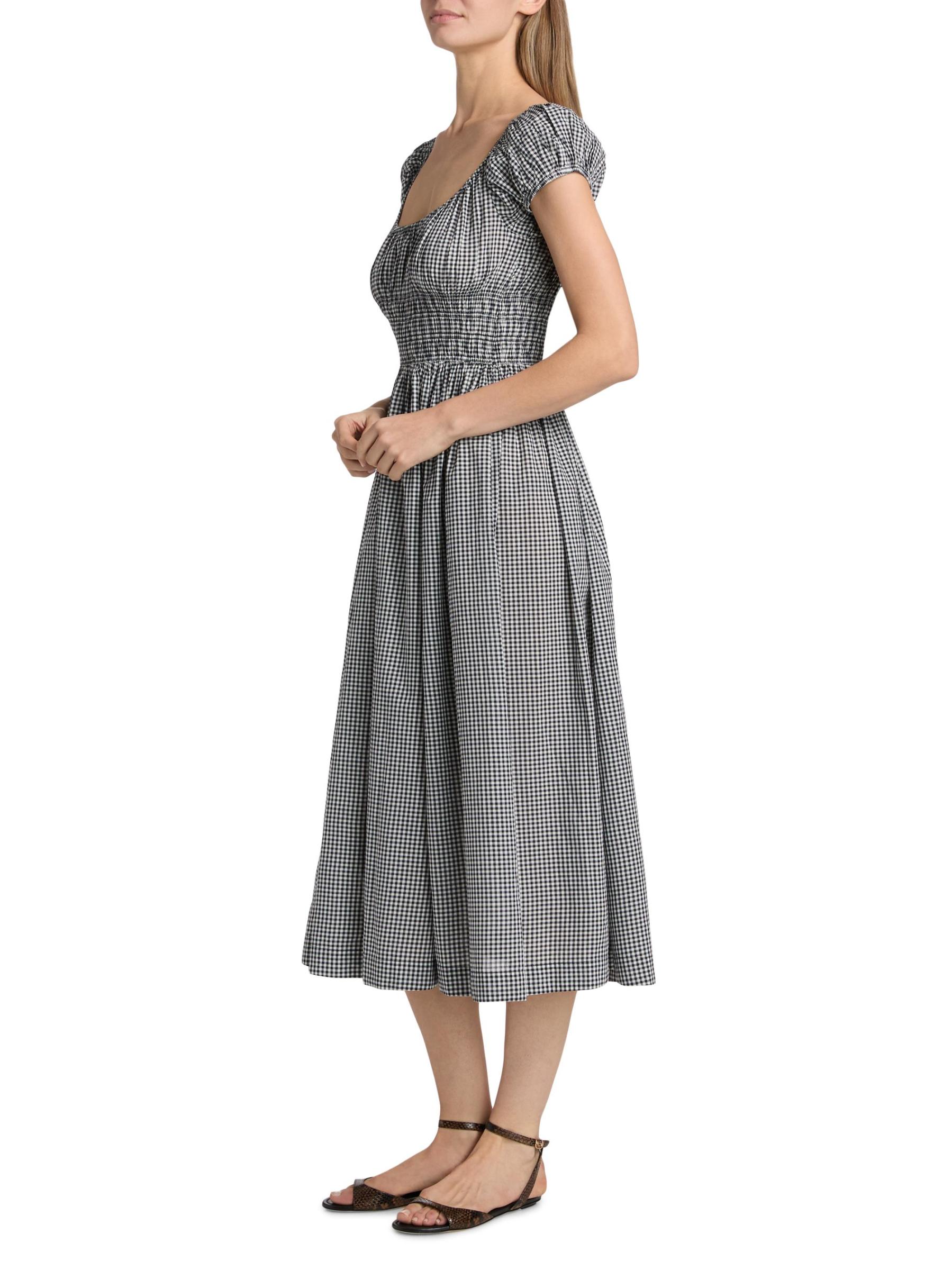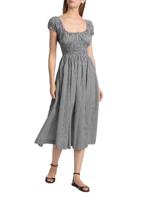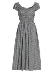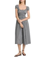 فستان متوسط الطول برقبة دائرية من القطن من كوينلي جينجهام
