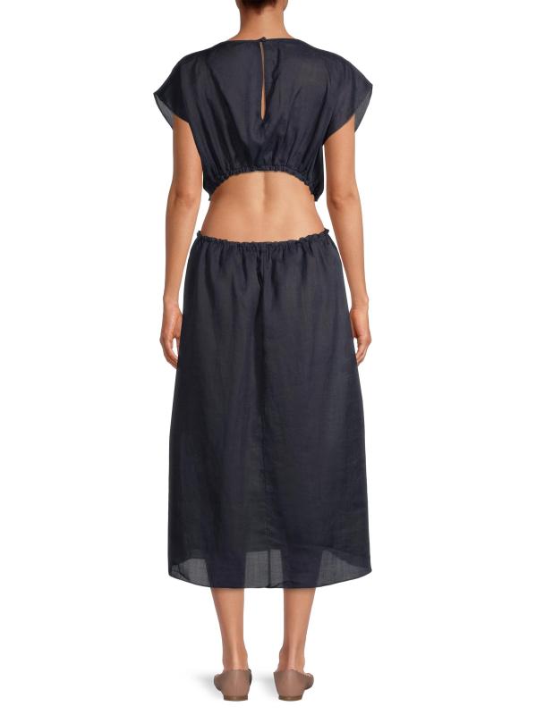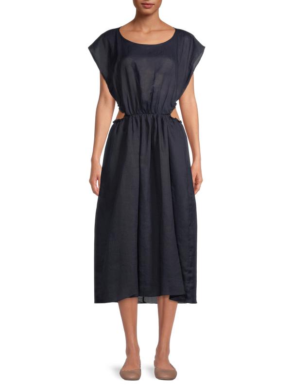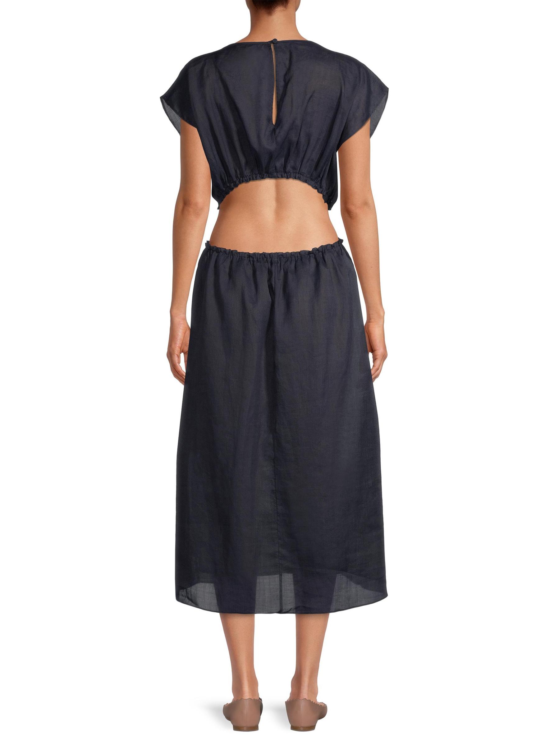 يتميّز فستان Rebecca Taylor متوسط الطول، المصنوع من قماش الرامي القابل للتهوية، بخصر جذاب وحواف مكشكشة.
