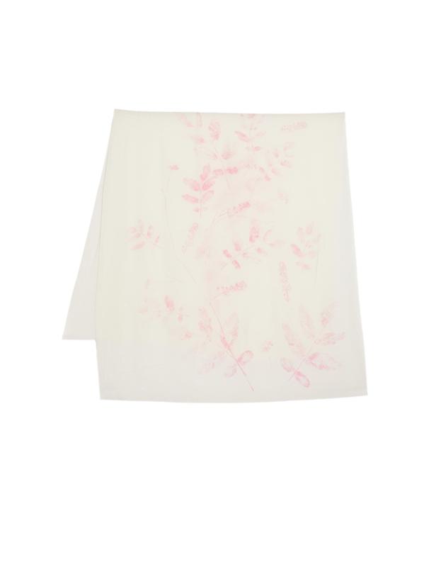 حصري. يتميز وشاح Faliero Sarti، المصبوغ بأوراق حقيقية، بتصميم زهري مشرق على ظهر من الصوف.