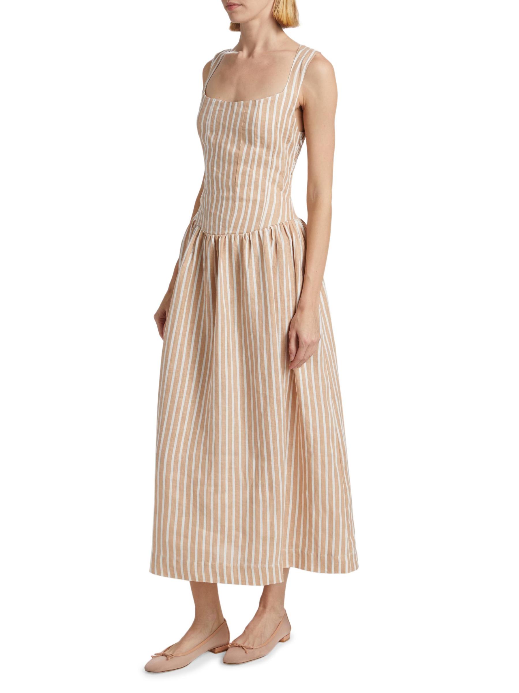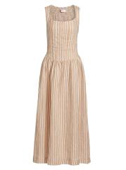 من مجموعة Rapture. يتميّز فستان SWF المتوسط المصنوع من الكتان الخفيف بصدّار ضيّق مع ياقة مربعة وخصر منسدل.